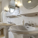Badkamer met ligbad, inloopdouche, dubbele wastafels en 2e toilet.