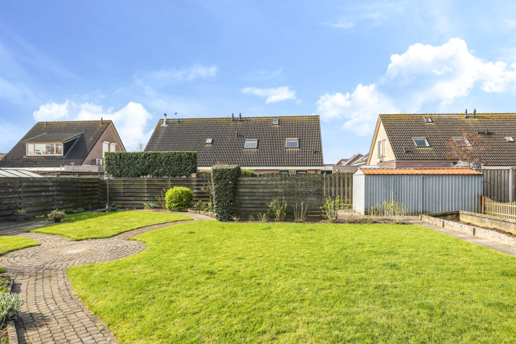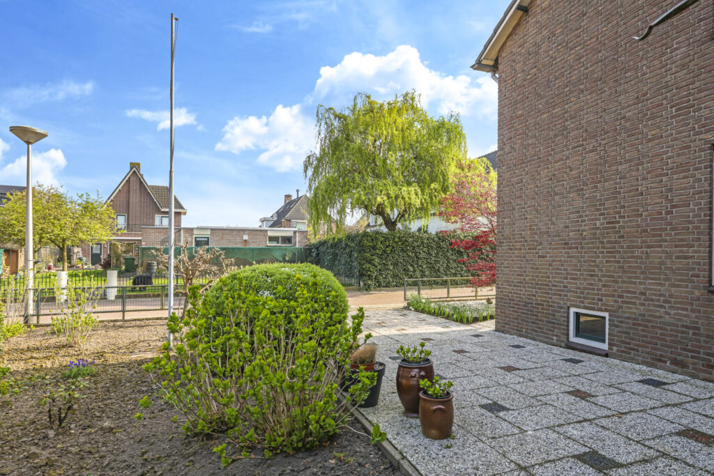 De achtertuin is een absolute troef van deze woning. Met een perceeloppervlak van 700 m² is er volop ruimte voor tuinliefhebbers, gezinnen met kinderen én mensen die van buiten leven houden. De tuin is speels ingedeeld met meerdere terrassen – waaronder een verhoogd terras – waar je op elk moment van de dag een fijne plek vindt om te zitten. Ook staat er achterop het perceel een stalen schuur van circa 5,1 x 2,7 meter.