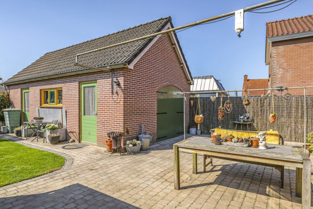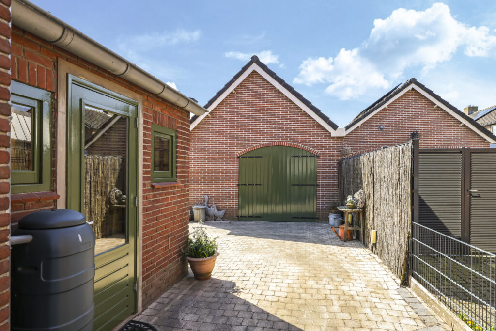 Ben je een klusser of autoliefhebber? Dan is deze vrijstaande garage zeker een pluspunt. De garage is groter dan gemiddeld en heeft dubbele, openslaande deuren waardoor je prima een auto of motor naar binnen kan rijden. Eénmaal binnen tref je een smeerput en een drainafvoer. Ook is er een gootsteen met water en tijdens het klussen hoef je het niet koud te krijgen in de wintermaanden door het warmtekanon. Door de zadelkap is er een zolder ontstaan. Ideaal voor extra opbergmogelijkheden. Voor de garage ligt een royale oprit van maar liefst 23m diep. Hierdoor kan je met gemak meerdere auto’s achter elkaar op eigen terrein parkeren.