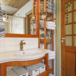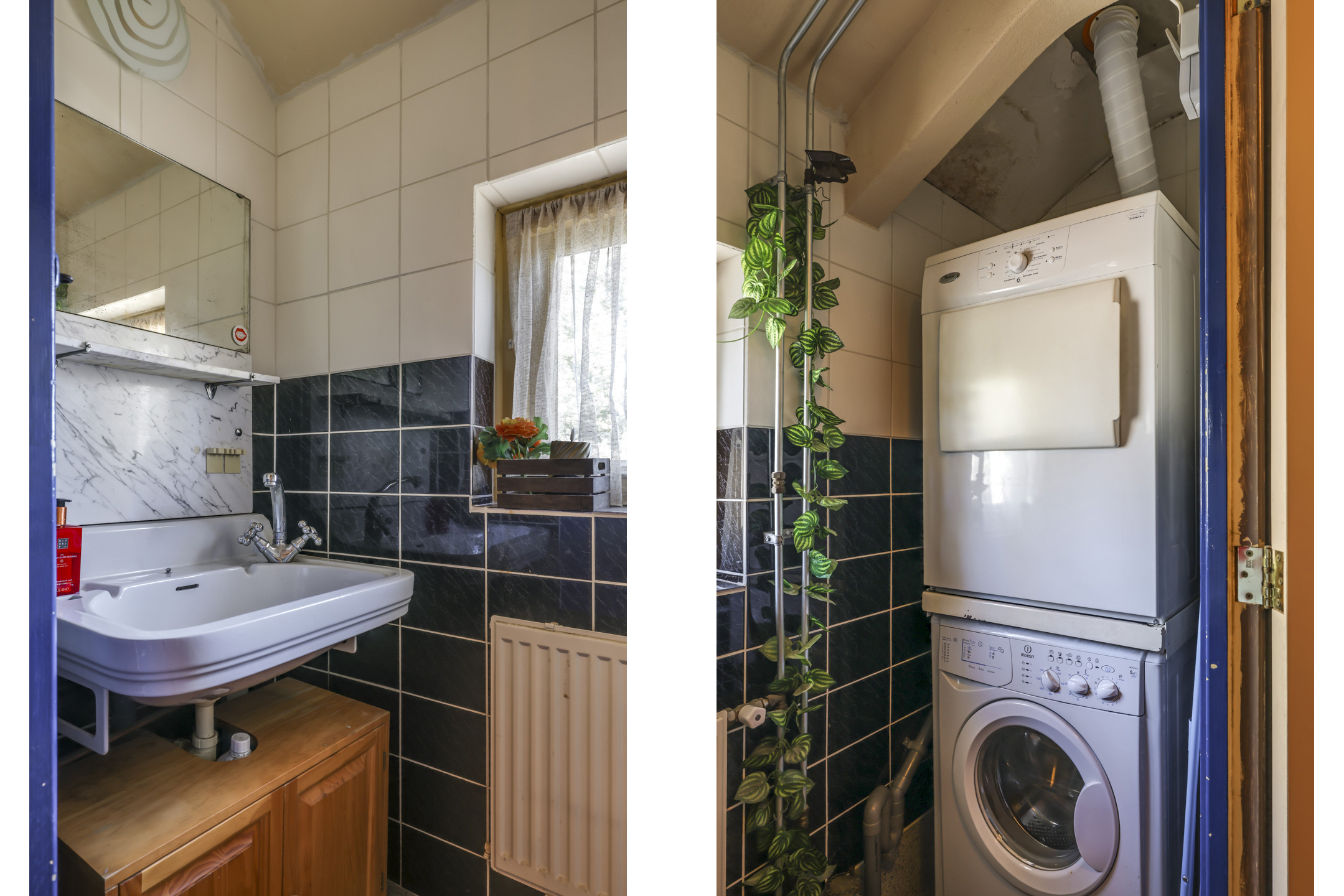 Op deze verdieping tref je de originele badkamer. Deze ruimte is niet groot waardoor er gekozen is om een royale badkamer op de begane grond te creëren. De voormalige badkamer is daarbij omgetoverd tot wasruimte. Hier kun je wasmachine en droger kwijt en is er een wastafel aanwezig.