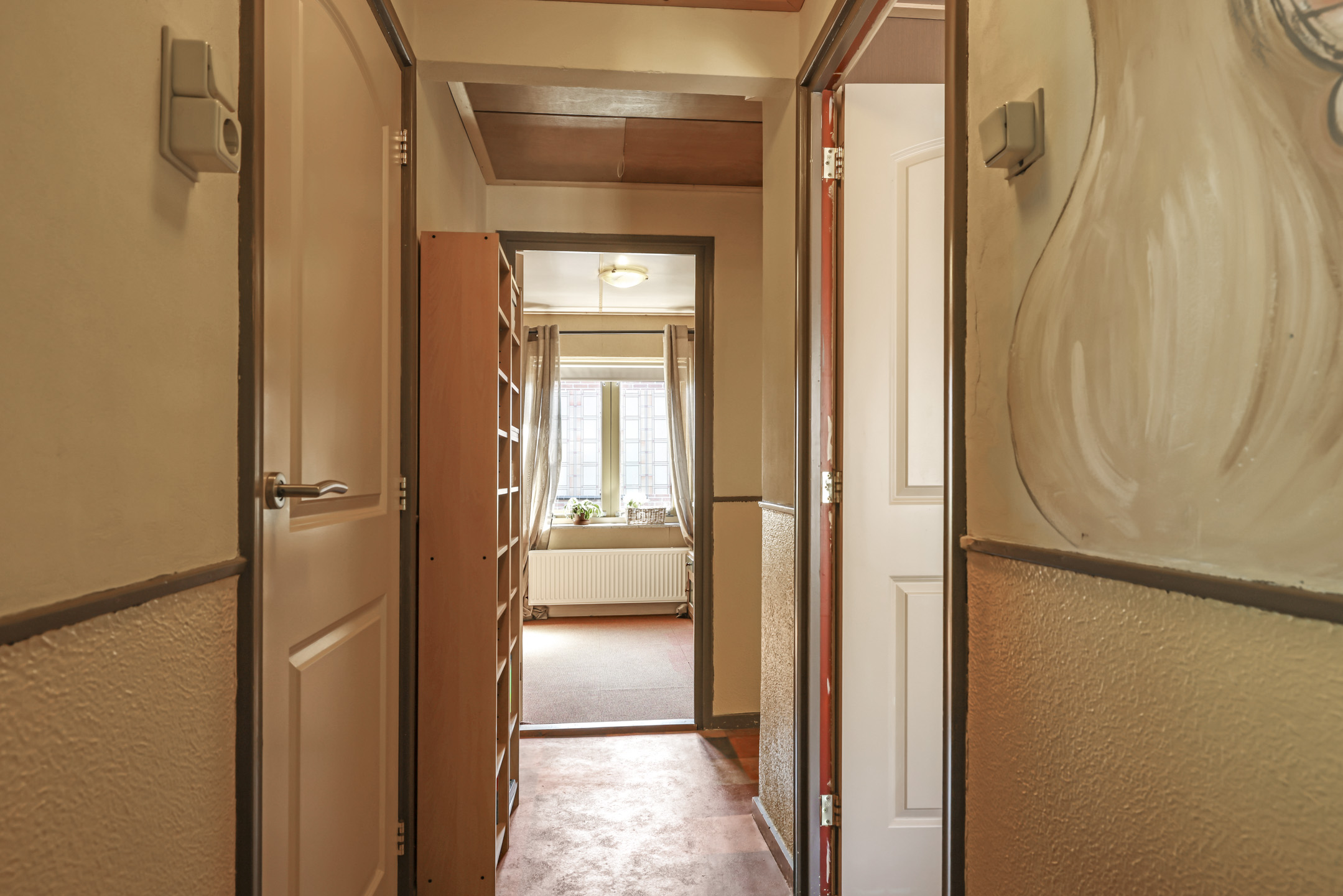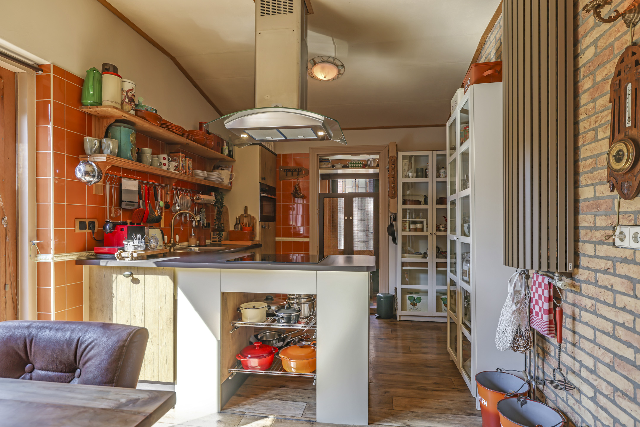 De bijkeuken zelf is een veelzijdige ruimte in de woning. De bijkeuken is niet groot maar zorgt wel een voor praktische ruimte waar je bijvoorbeeld een extra koel/vriescombinatie kwijt kan. De bijkeuken biedt bovendien directe toegang tot de achtertuin, wat het extra handig maakt voor dagelijks gebruik.