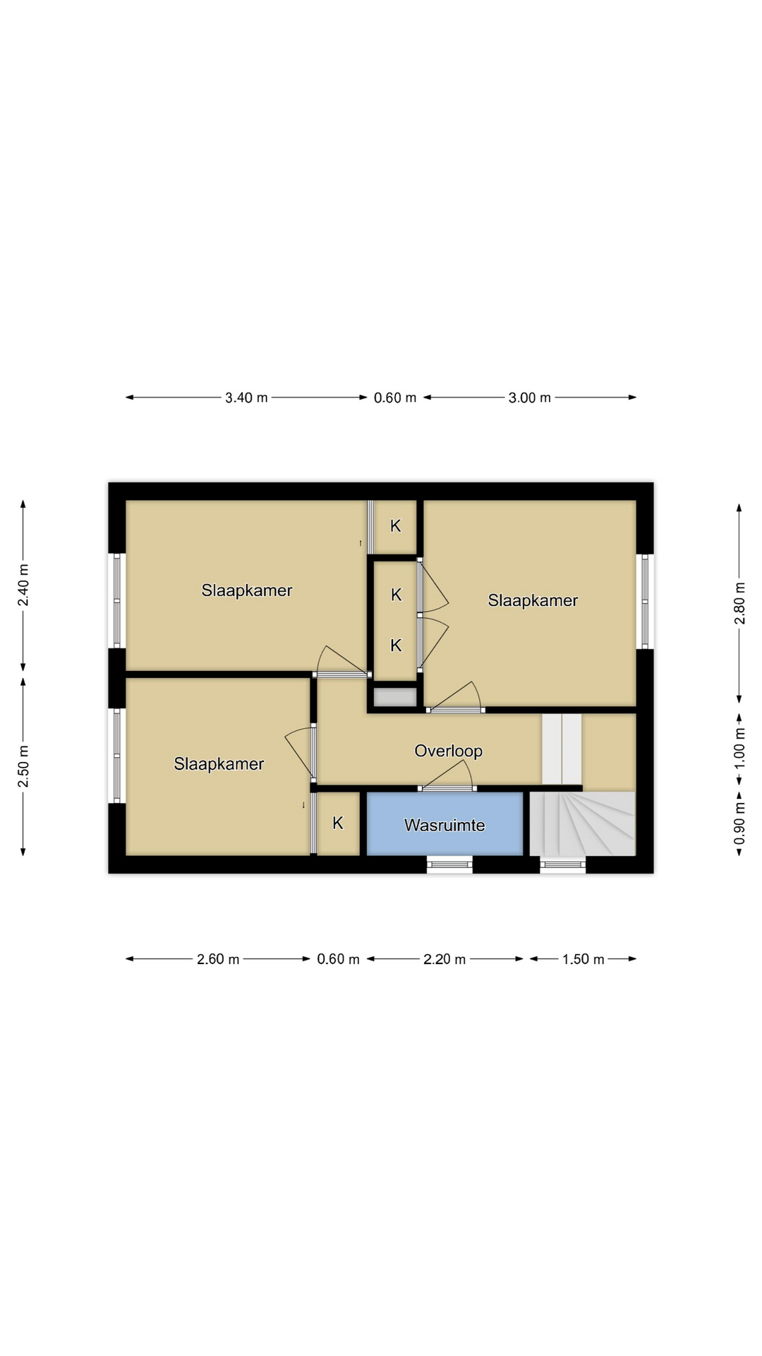 3 slaapkamers op de verdieping, allen met inloopkast