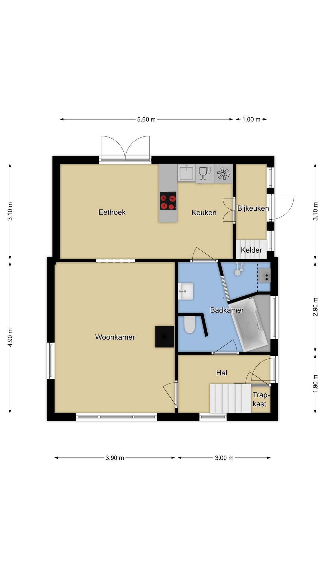 Bijkeuken met toegang tot de kelder
