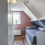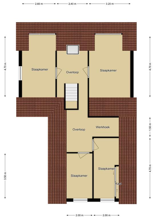 Via de ruime hal bereiken we de 1e verdieping. De overloop voelt lekker ruim aan vanwege het aanwezige dakraam. Op de overloop is zelfs nog een werkhoek aanwezig. Perfect voor een rustige werk/studieruimte. Deze woonlaag is verder ingedeeld met 4 volwaardige slaapkamers. 15m², 12m² , 9m² en 7m² groot. De 2 grootste slaapkamers zijn voorzien van een brede dakkapel waardoor er tevens een fijne lichtinval is. Beide dakkapellen zijn voorzien van een rolluik. Er is gekozen voor een eenduidige laminaatvloer waardoor de hele verdieping voelt als één geheel.