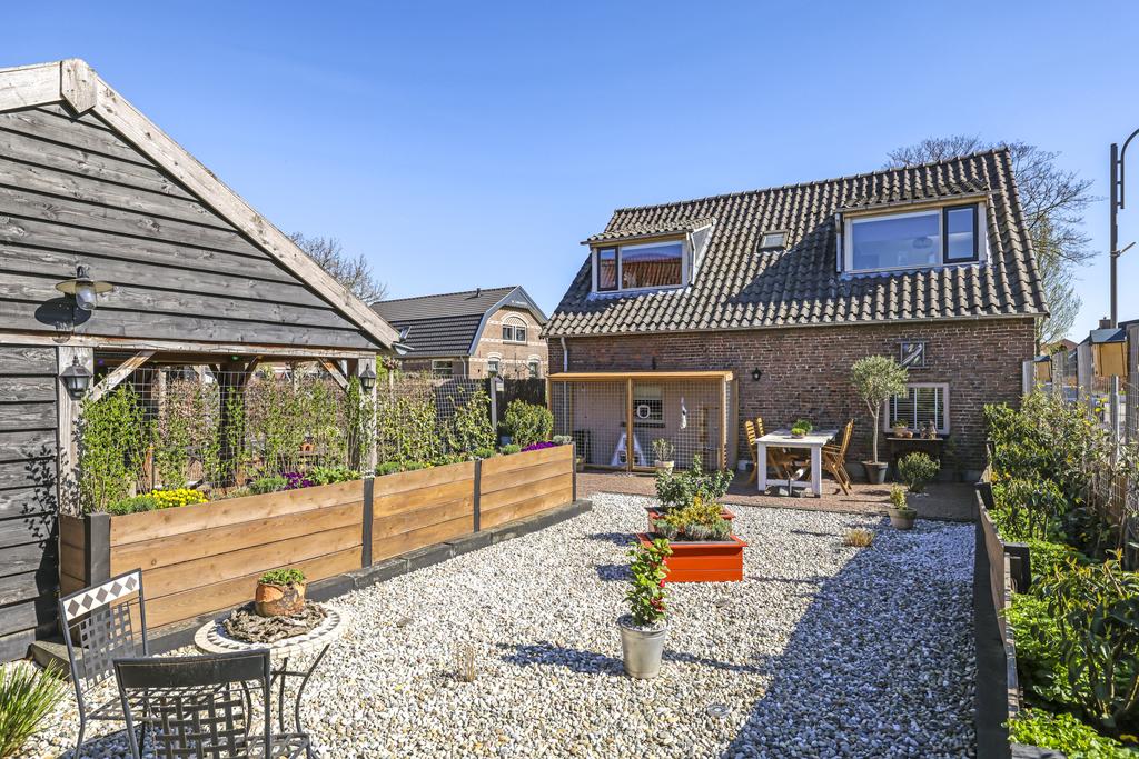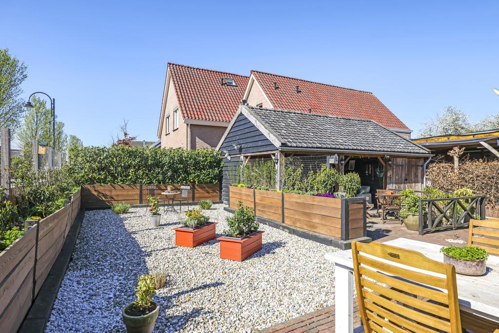 Houd je van het buitenleven, dan zoek je vast ook een tuin met veel ruime en zon. Deze woning heeft zo’n tuin waar je heerlijk kunt gaan genieten. De groene erfafscheidingen zorgen voor een groen karakter met veel privacy. Aan de straatzijde zijn planten recent vernieuwd waardoor deze nog niet volgroeid zijn. De tuin wordt door de verschillende soorten bestrating (gebakken klinkers en grind) en diverse plantenbakken opgedeeld in verschillende zithoeken. Opvallend is de sfeervolle veranda met een pan-gedekte zadelkap waaronder je heerlijk kunt zitten. Vanaf 2 zijden is de schuur welke tevens onder deze veranda is gebouwd te bereiken. Aan opslagruimte geen gebrek!