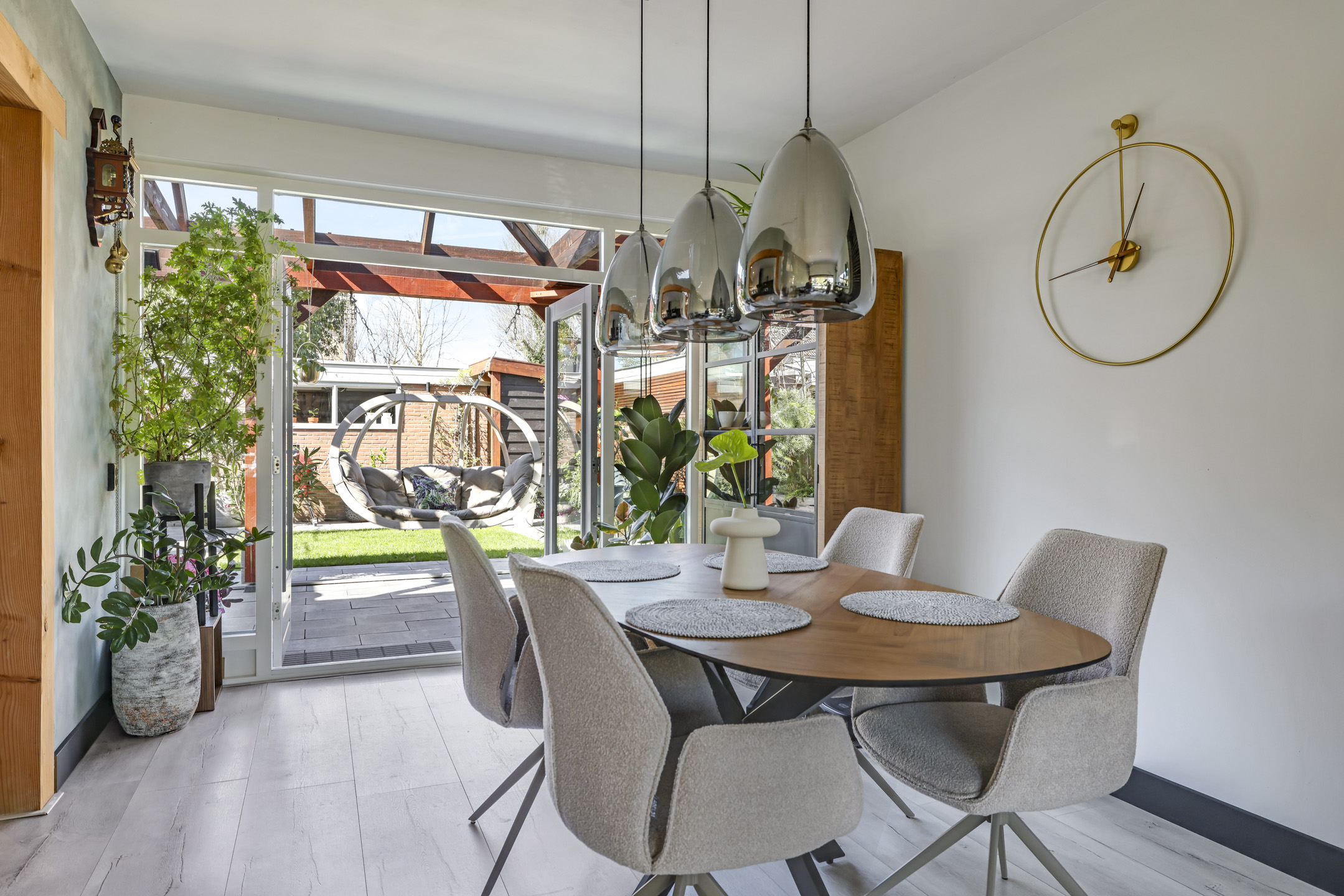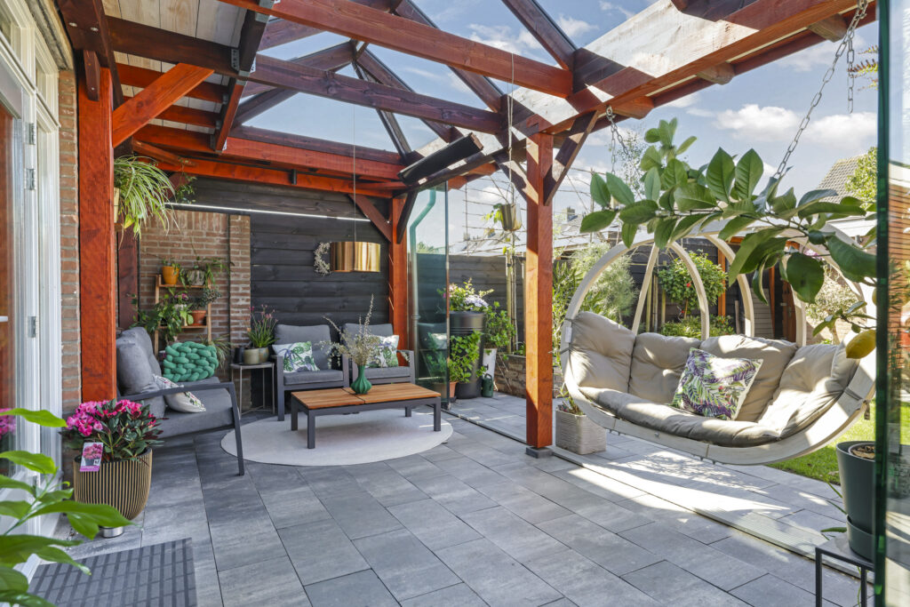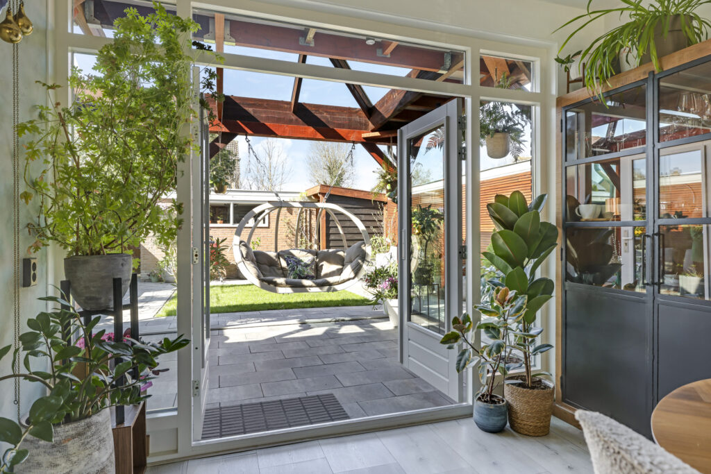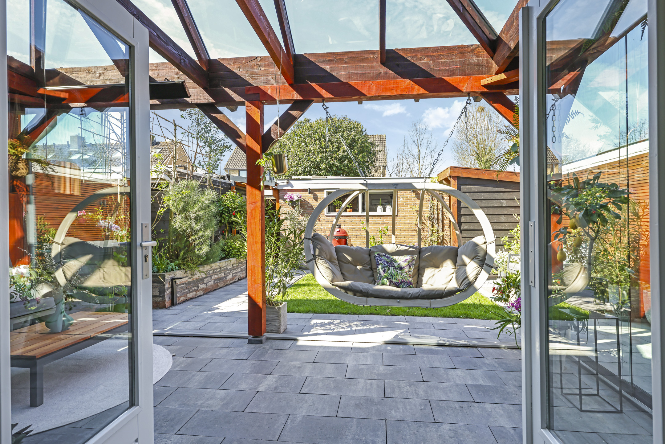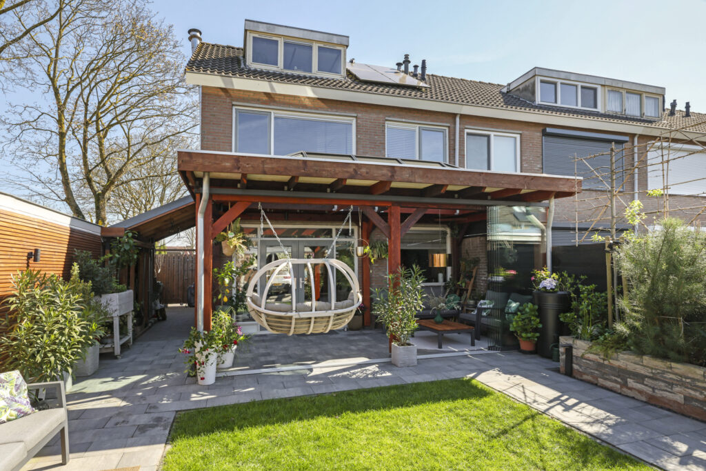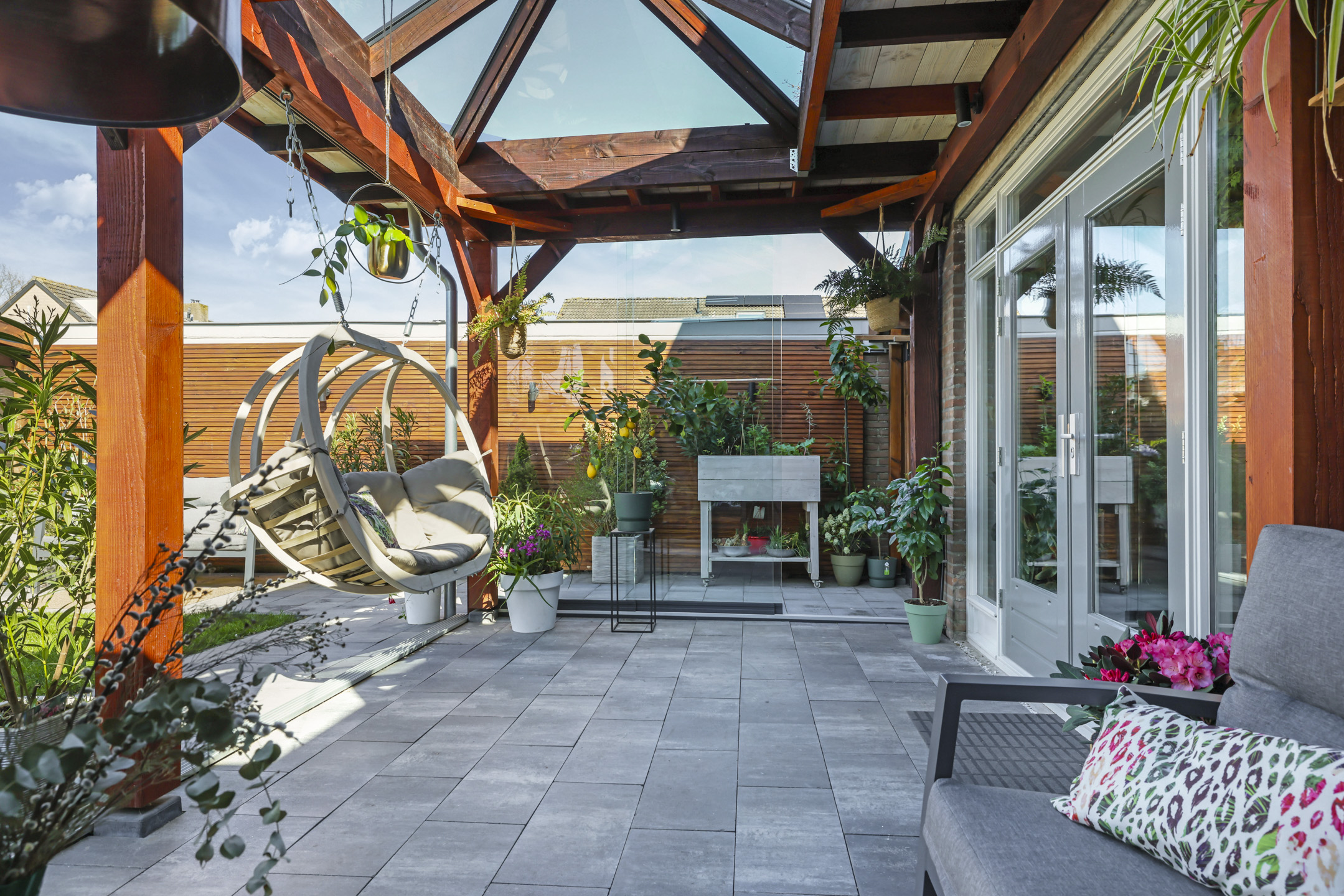 Het mooiste pluspunt van deze woning is toch wel de veranda aan de achterzijde. Deze is geheel af te sluiten middels een glazen schuifwand waardoor je het ook een tuinkamer zou kunnen noemen. Bovendien kan je hier nóg langer buiten zitten. Er is goed nagedacht over het dak van de veranda, deze is vrijwel geheel van glas gemaakt waardoor deze nog hoger voelt. Ook verlies je daardoor geen lichtinval in de woning. Zelfs op de afwerking is niet bespaard, zo zijn er zinken dakgoten geplaatst. Zie jij jezelf hier al genieten?