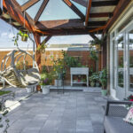 Sfeervolle tuinkamer met glazen schuifwanden en glazen plafond