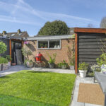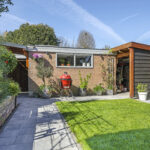 De brede achtertuin is voorzien van een luxe tuinkamer voorzien van glazen schuifwanden, een stenen berging en veel extra opbergruimte onder overkappingen. De tuin ligt daarbij gunstig op het westen.