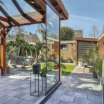 Tuinkamer geheel af te sluiten met glazen schuifwanden