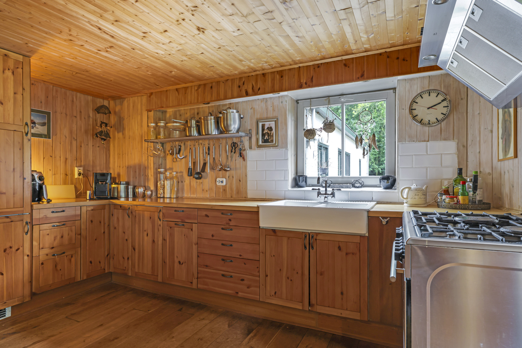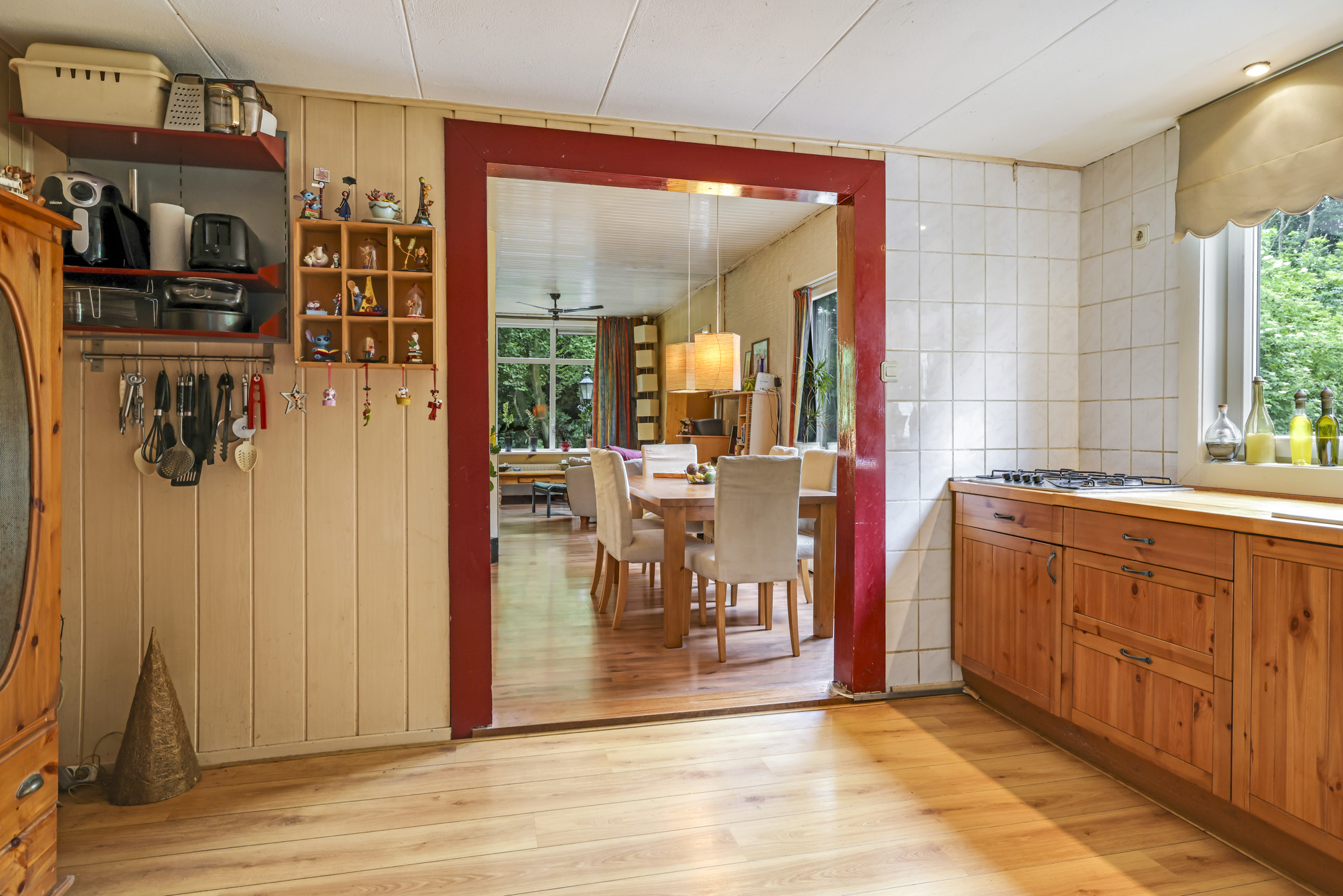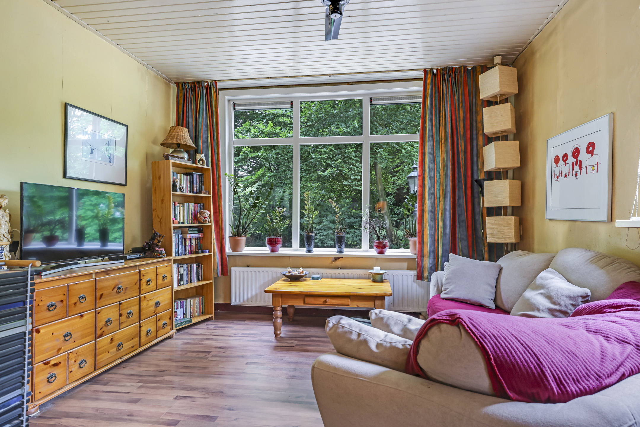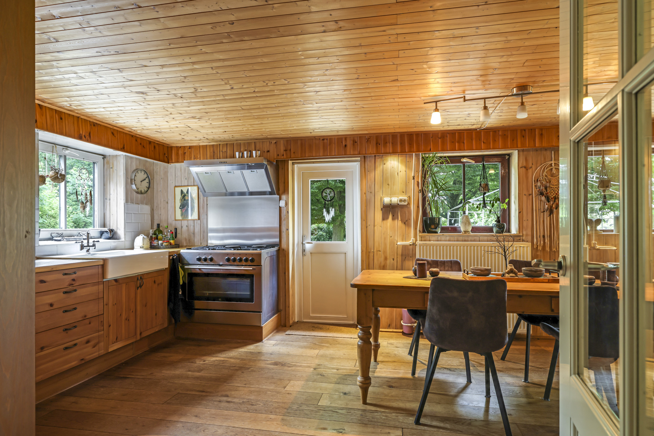 Vanuit de hal loopje door naar de keuken. Net als in het achterhuis is hier gekozen voor een houten keukenblok. Mocht je het wensen dan zou je bij de keuken zelfs nog een kleine eettafel kwijt kunnen. Aangesloten aan de keuken tref je de woonkamer. Opvallen zijn hier de grote ramen waardoor je een ruimtelijk gevoel ervaart. In deze ruimte kan je eenvoudig een grote zithoek en een 6-persoons eettafel kwijt.