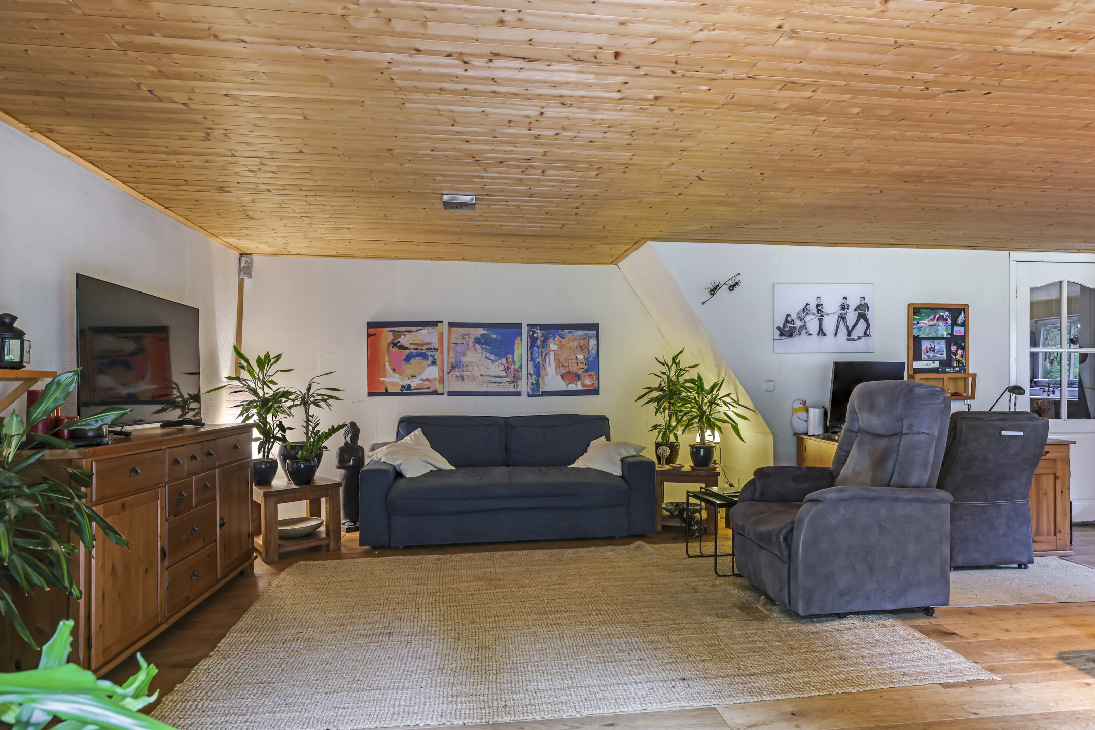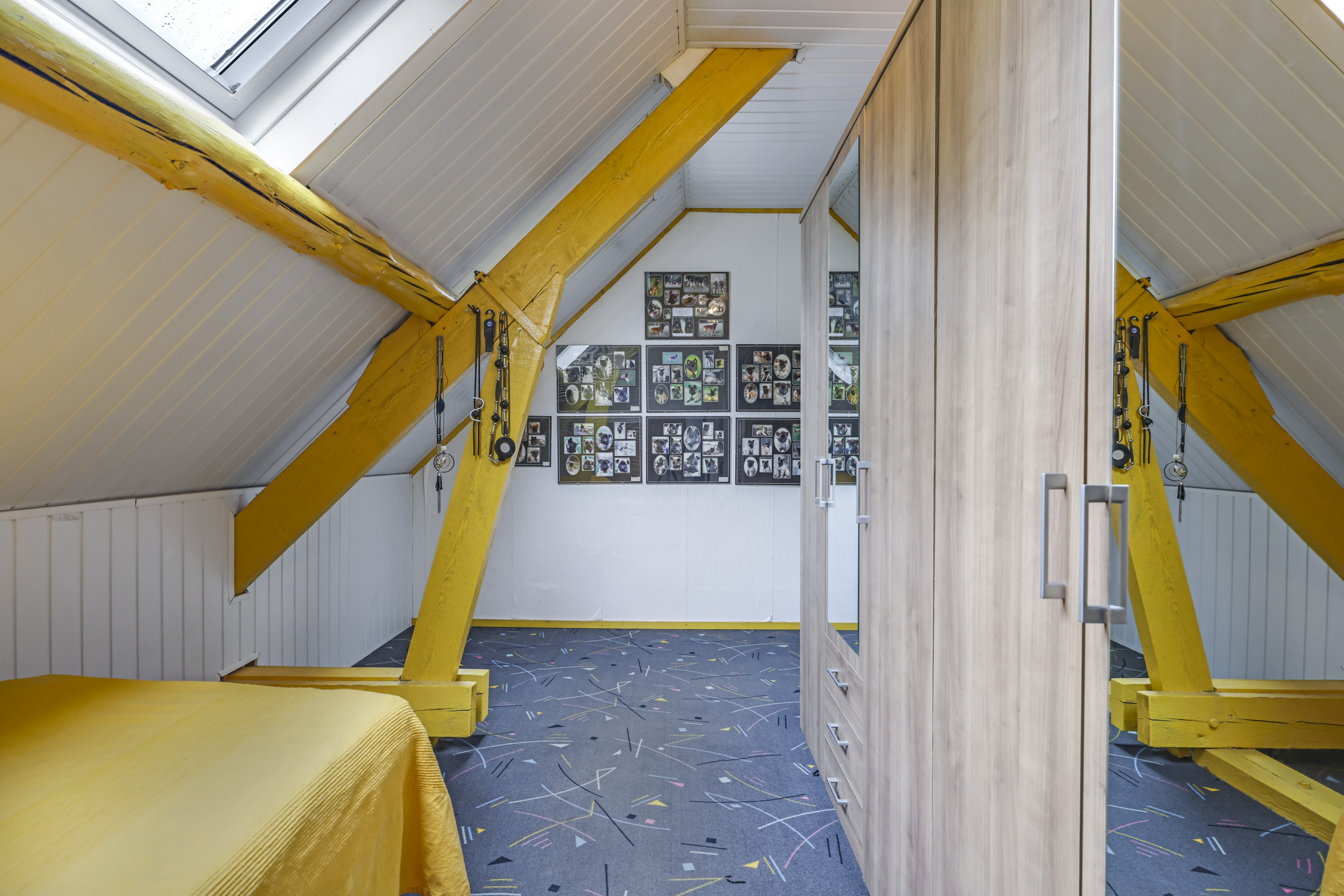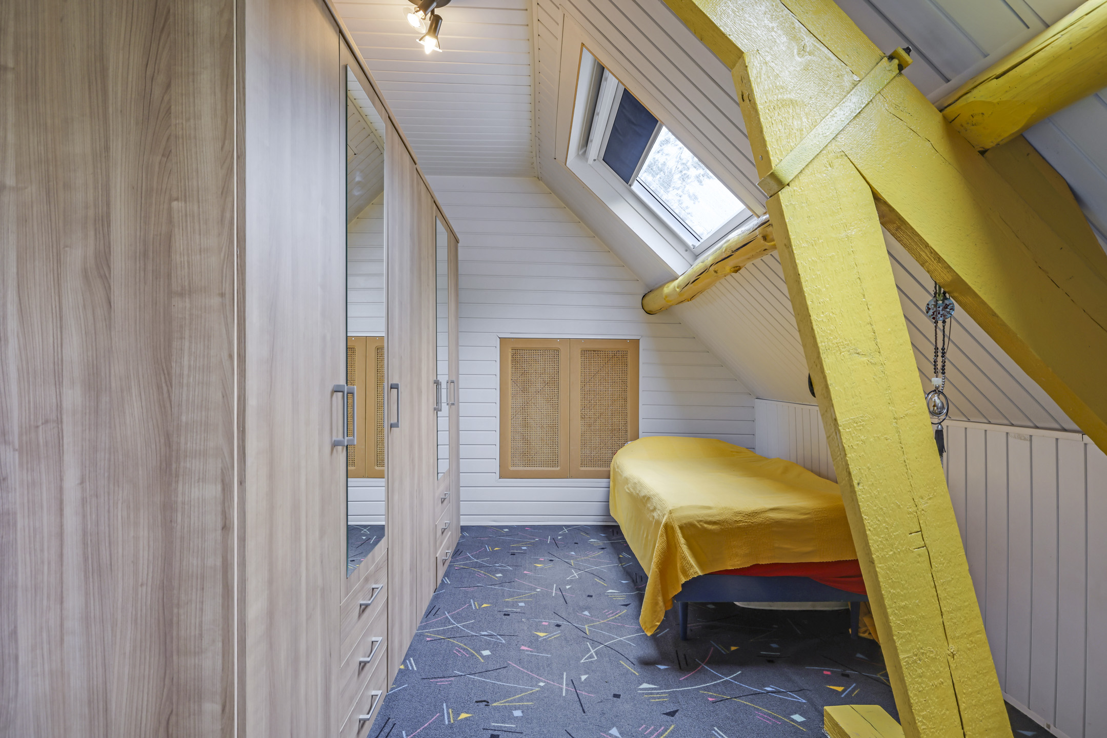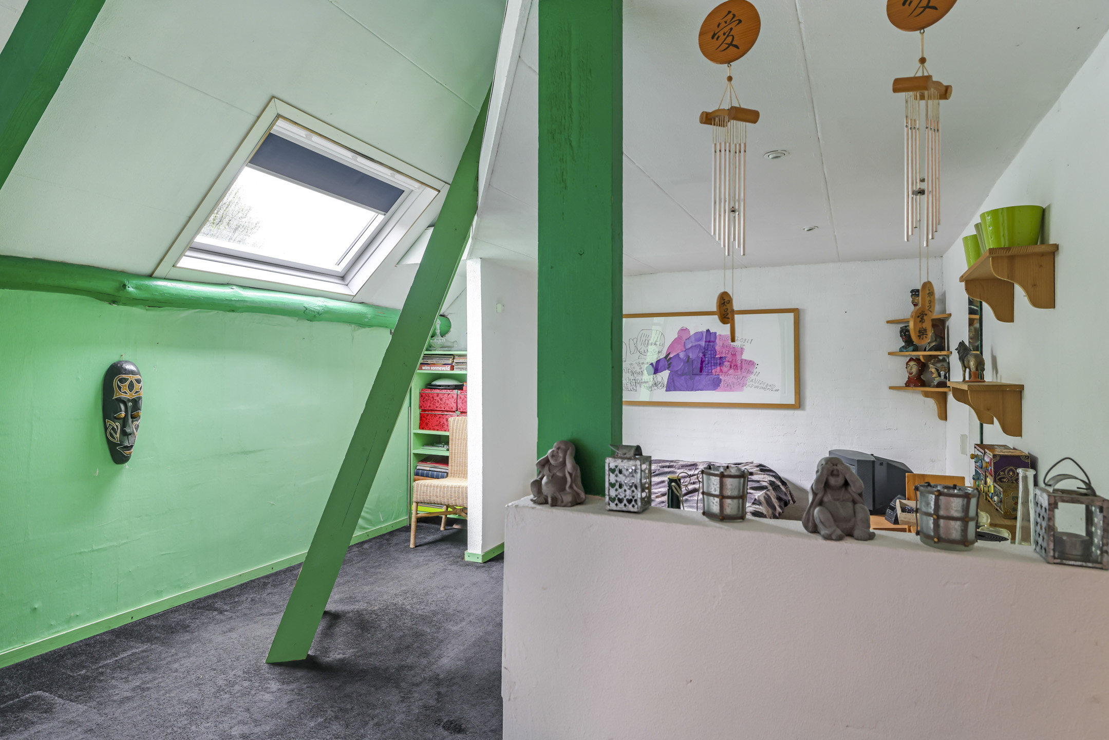 Op de overloop is een vlizotrap via waar er toegang is tot de bergzolder. Met een nokhoogte van ca. 2,6m tref je hier nog opvallend veel ruimte.