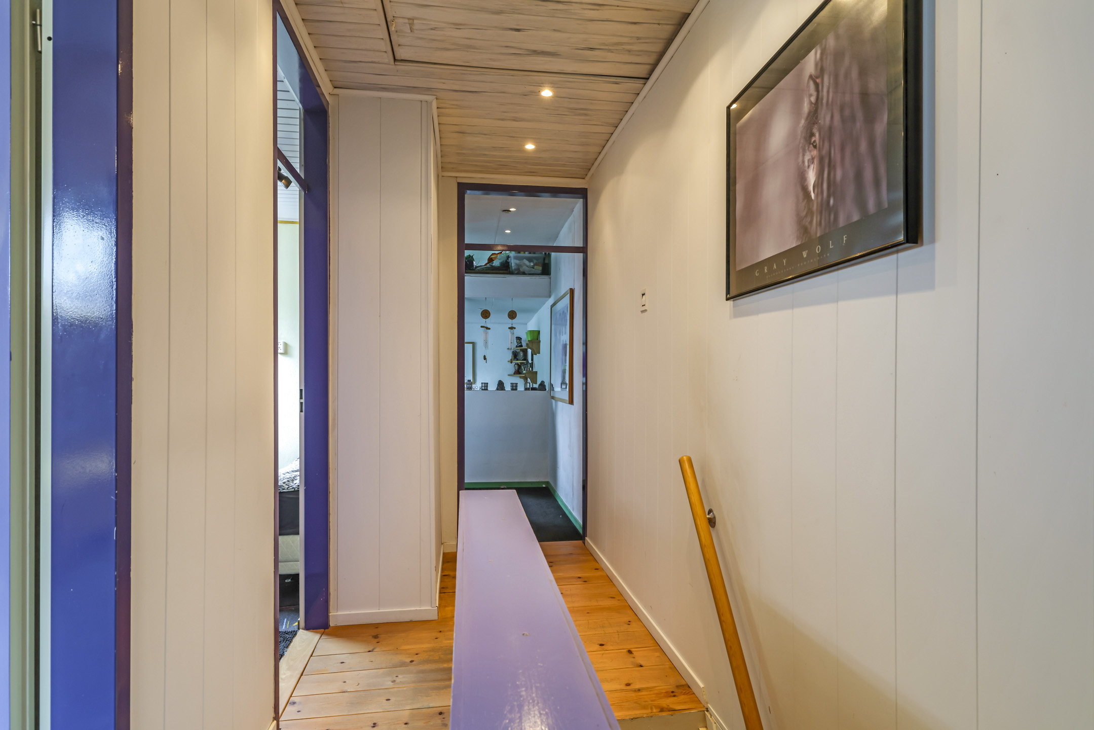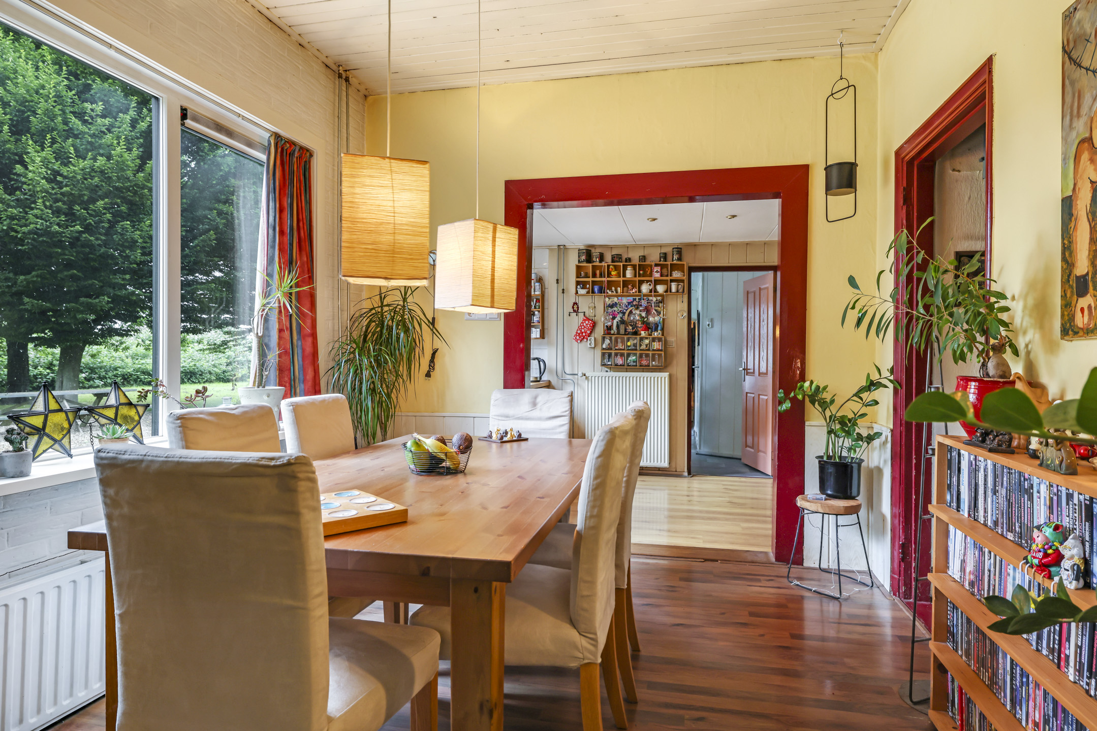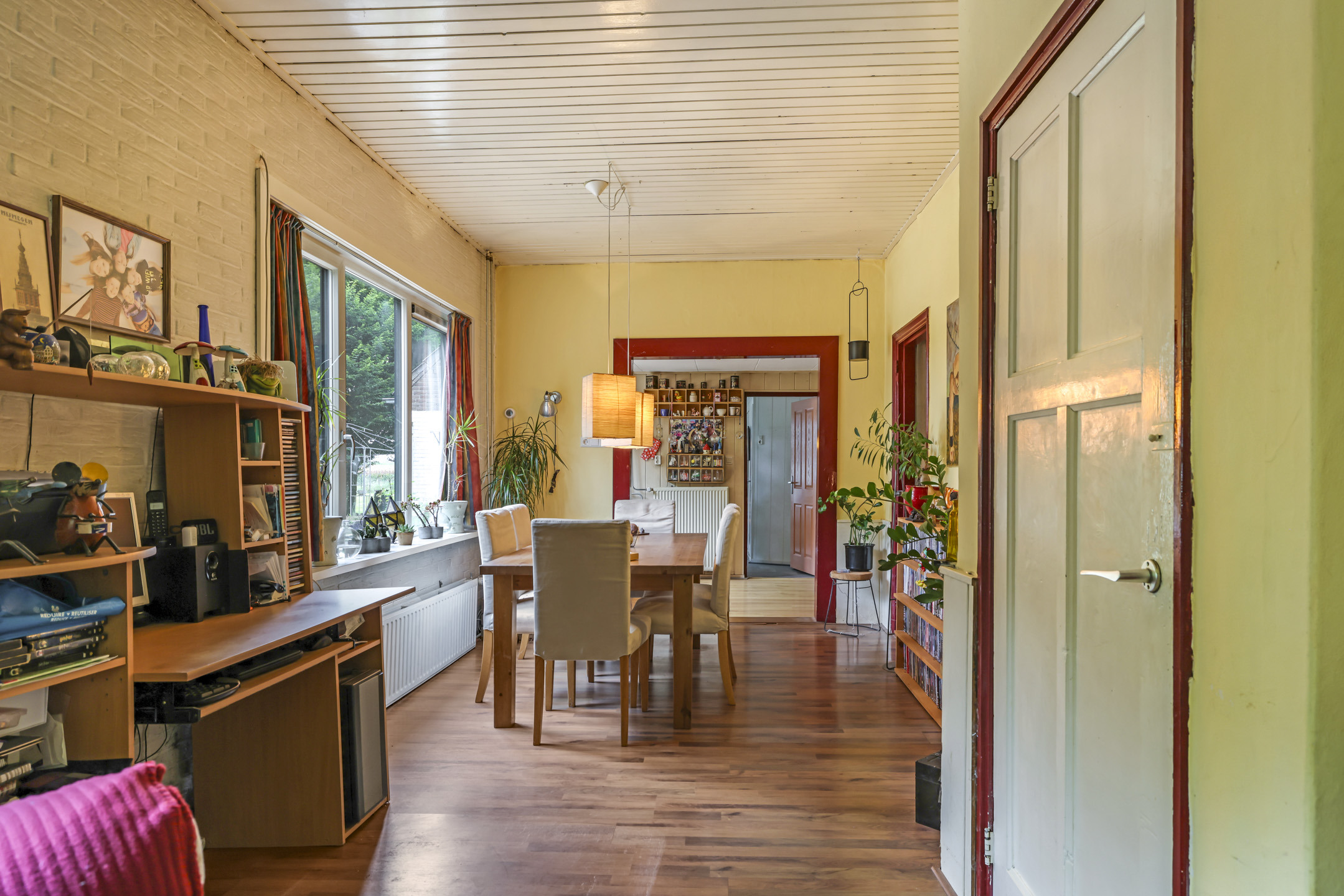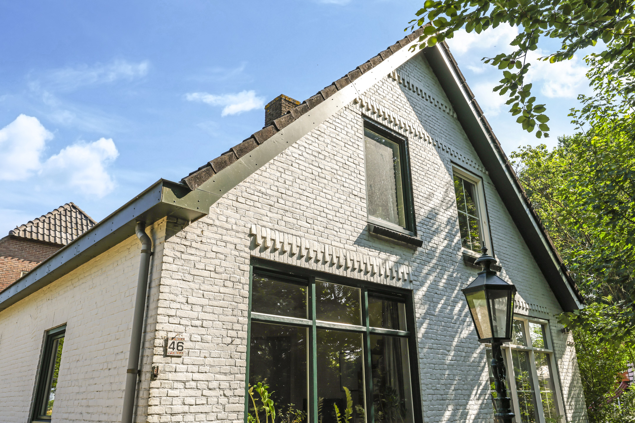 Een vooroorlogse woning is nooit standaard, zo ook deze woning niet. Het betreft een voormalige woonboerderij terwijl het niet de klassieke uitstraling heeft. Wel heeft het een sfeervolle wit gestucte gevel en is de woning opgedeeld in twee delen. Hierdoor is de woning ook goed te gebruiken voor dubbele bewoning, een zogenoemde kangoeroewoning welke wordt verbonden door de hal. Aan de achterzijde van de woning is namelijk een gedeelte van de deel bij de woning betrokken waardoor ook hier een ruime woning is gecreëerd. Een gedeelte van de deel is nog behouden voor bergruimte. Kortom, hier staat een degelijke woning met leuke aspecten waar je nog geheel je eigen stempel op kunt drukken.