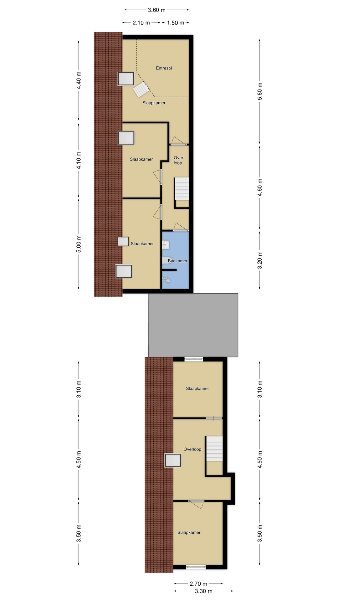 5 Slaapkamers op de verdieping (2 voor, 3 achter)