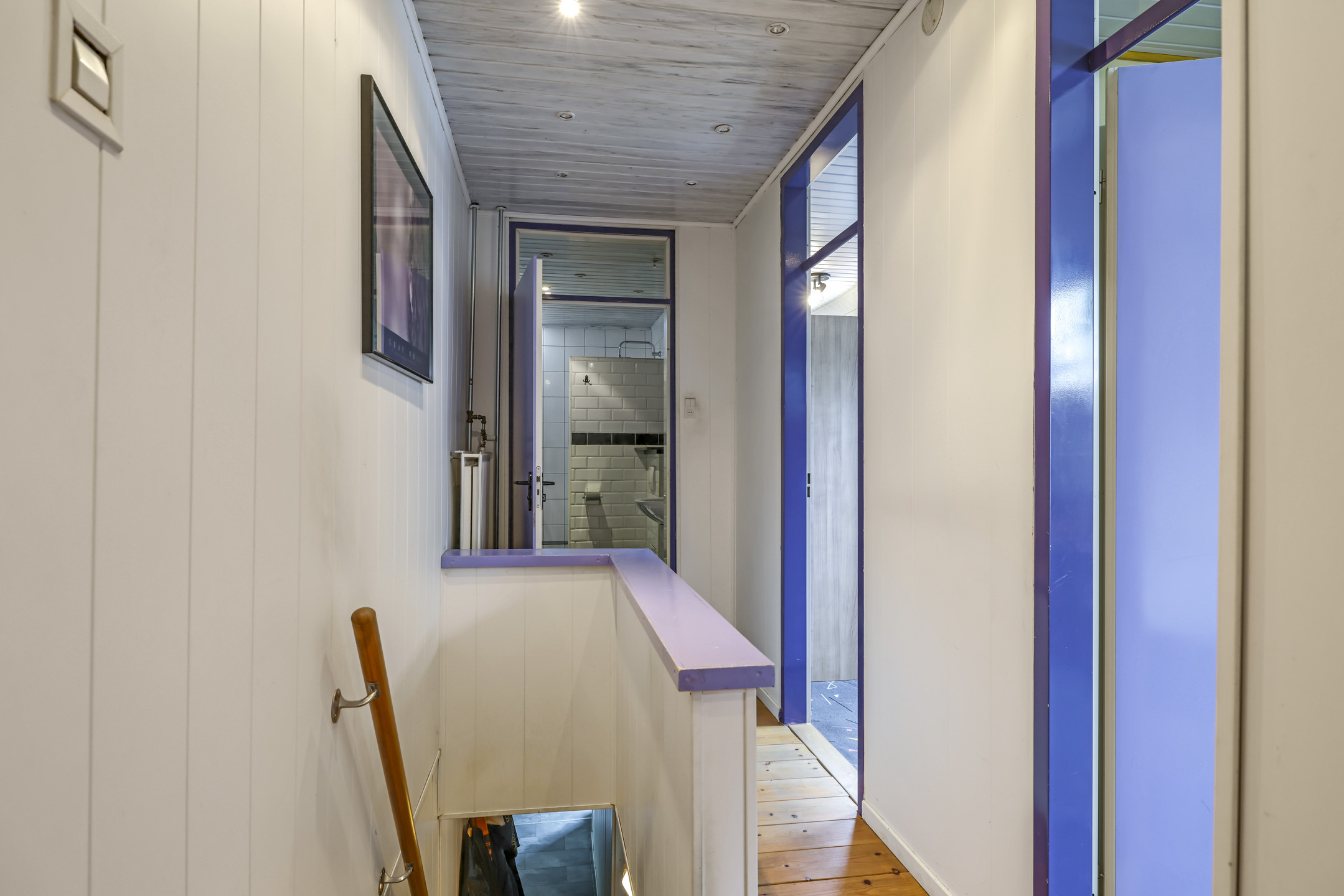 Net als op de begane grond is ook de 1e verdieping van het achterhuis royaal opgezet. Deze woonlaag bestaat uit 3 slaapkamers en een badkamer. Opvallend is dat de achterste slaapkamer is voorzien van een entresol doordat je hier de ruimte hebt tot in de nok. Alle kamers zijn voorzien van grote dakvensters. De badkamer is voorzien van een tijdloze uitstraling en ingedeeld met een wastafel, 2e toilet, een inloopdouche en een handdoekradiator.