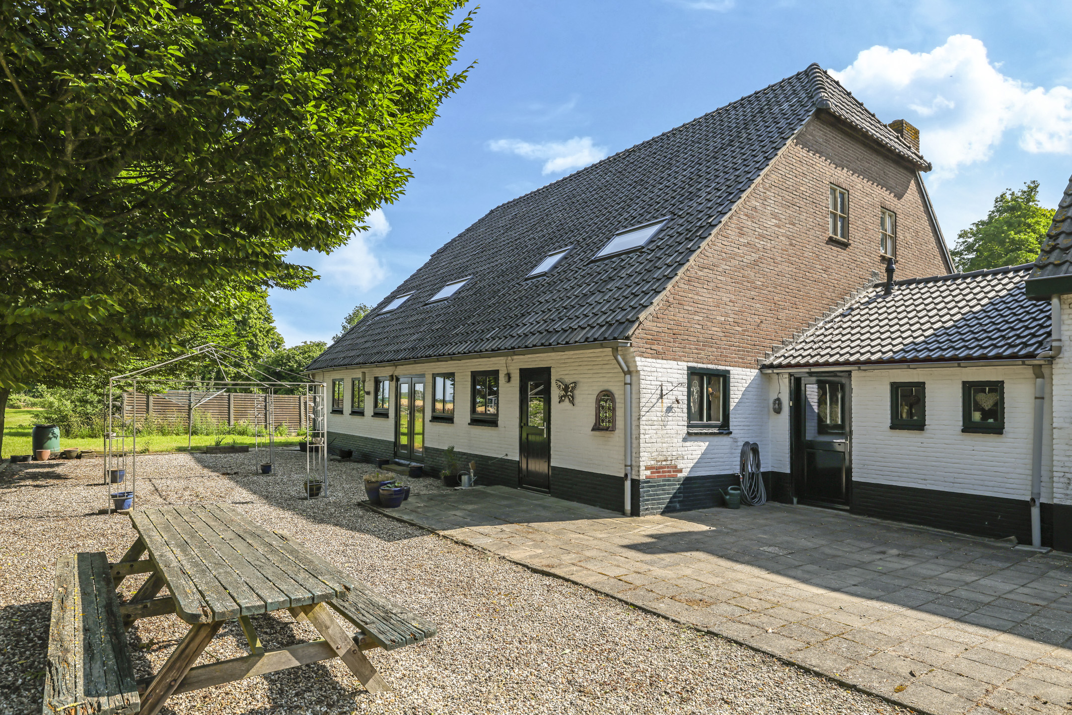 Quote van de makelaar: “Altijd al in het rustige en privacyvolle buitengebied willen wonen met de vrije natuur binnen handbereik? Kom dan eens kijken bij dit bijzondere object waarbij je geniet van veel buiten- én veel binnenruimte. Daarbij is de woning opgedeeld waardoor er een mogelijkheid is voor dubbele bewoning!”.