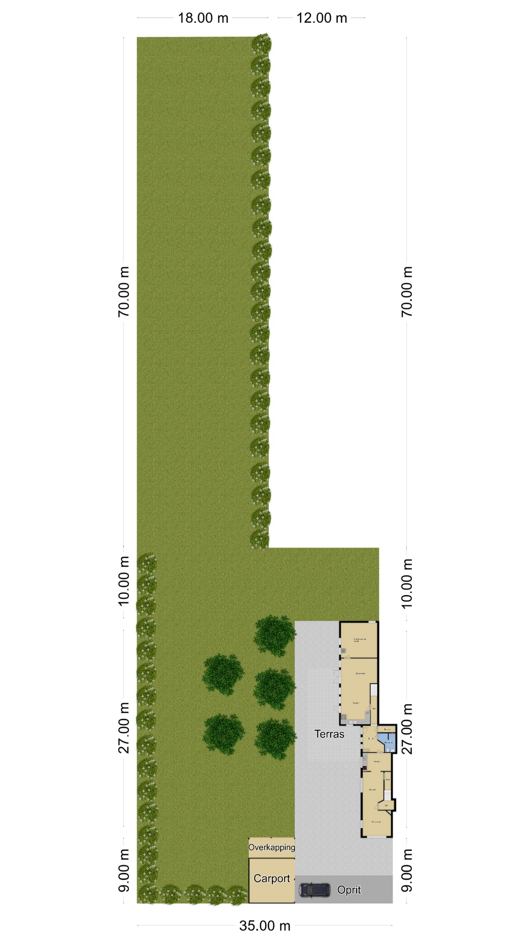 Deze woning is gelegen op een zeer ruime kavel van 3.565m² groot. Dit geeft niet alleen de mogelijkheid om meerdere heerlijke buitenterrassen te creëren, maar ook bevindt zich hier een weiland dat tevens goed geschikt zou zijn voor het houden van dieren. Direct aan de woning is een terras gecreëerd met stenen en grind waar je heerlijk van de rust en de privacy van het buitengebied kan genieten. Diverse grote bomen zorgen daarbij voor een groen karakter en schaduwplaatsen. De rest van tuin is voorzien van gras en diverse struiken waardoor de mogelijkheden hiermee nog eindelijk zijn. Aan het einde van de oprit tref je nog een carport waaronder je de auto beschut kan parkeren. De woning ligt dicht bij de dijk waardoor je geniet van een heerlijk vrij gevoel in een groene omgeving. De locatie van deze woning is werkelijk prachtig!