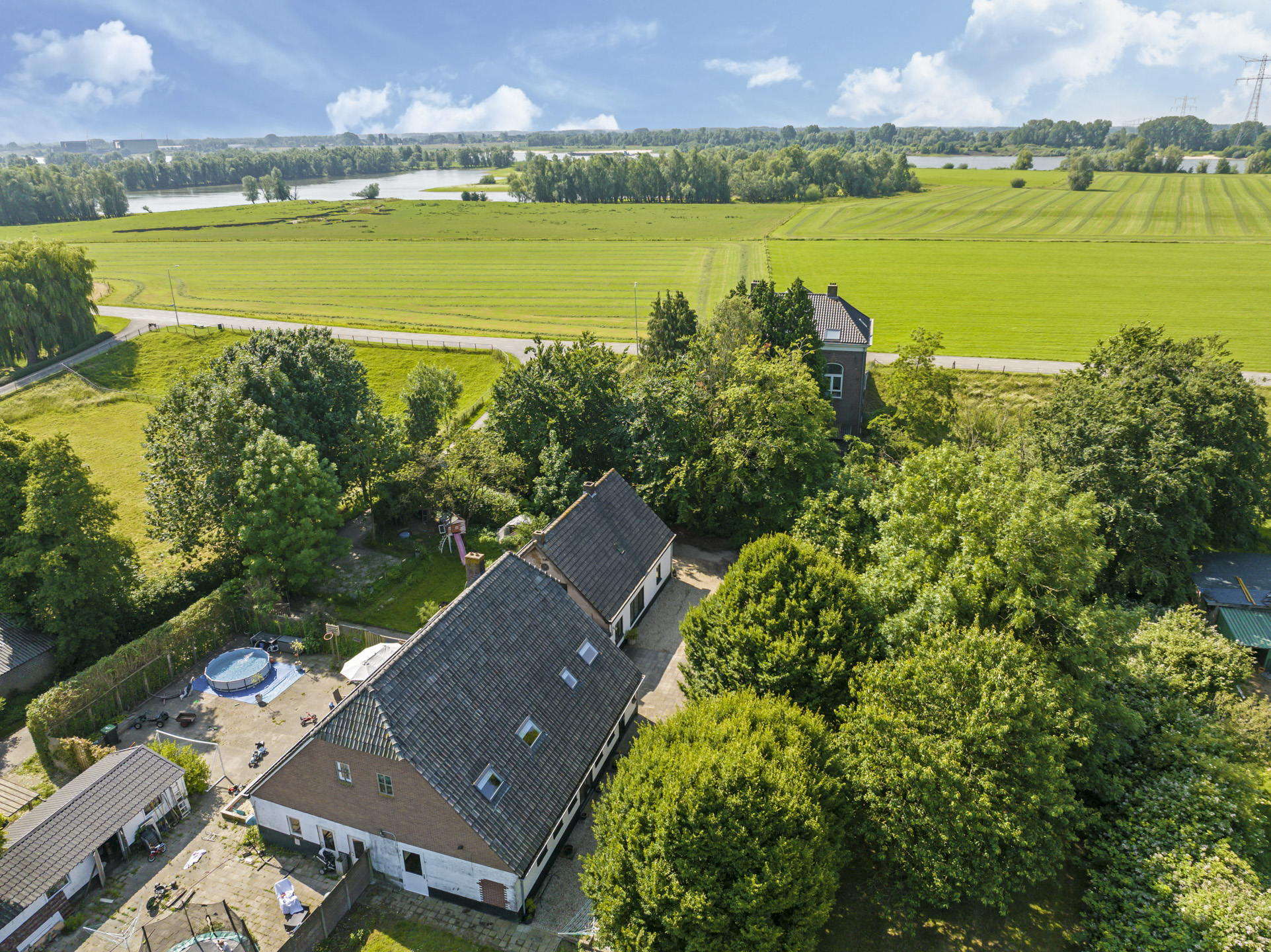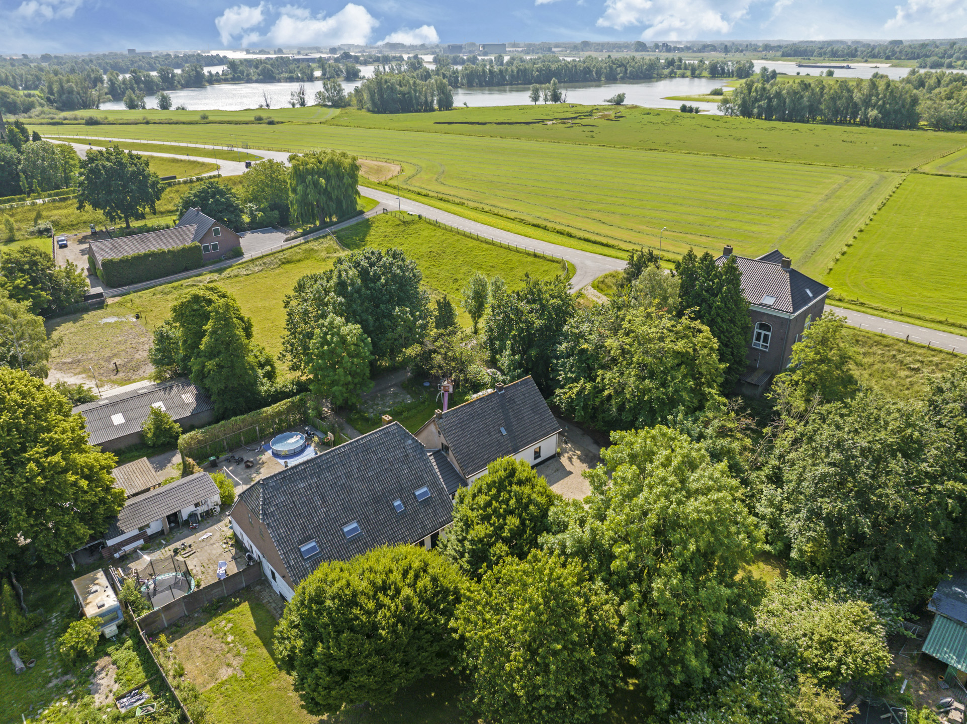 De woning staat voorop op het perceel waardoor de tuin goed om de woning ligt. Met het riante perceel heb je ruimte genoeg om bijvoorbeeld dieren te houden of meerdere speeltoestellen te plaatsen. De tuin met veel gras en volwassen bomen biedt de privacy en de rust van het buitengebied. De oprit heeft een directe ontsluiting aan de Waalbandijk.