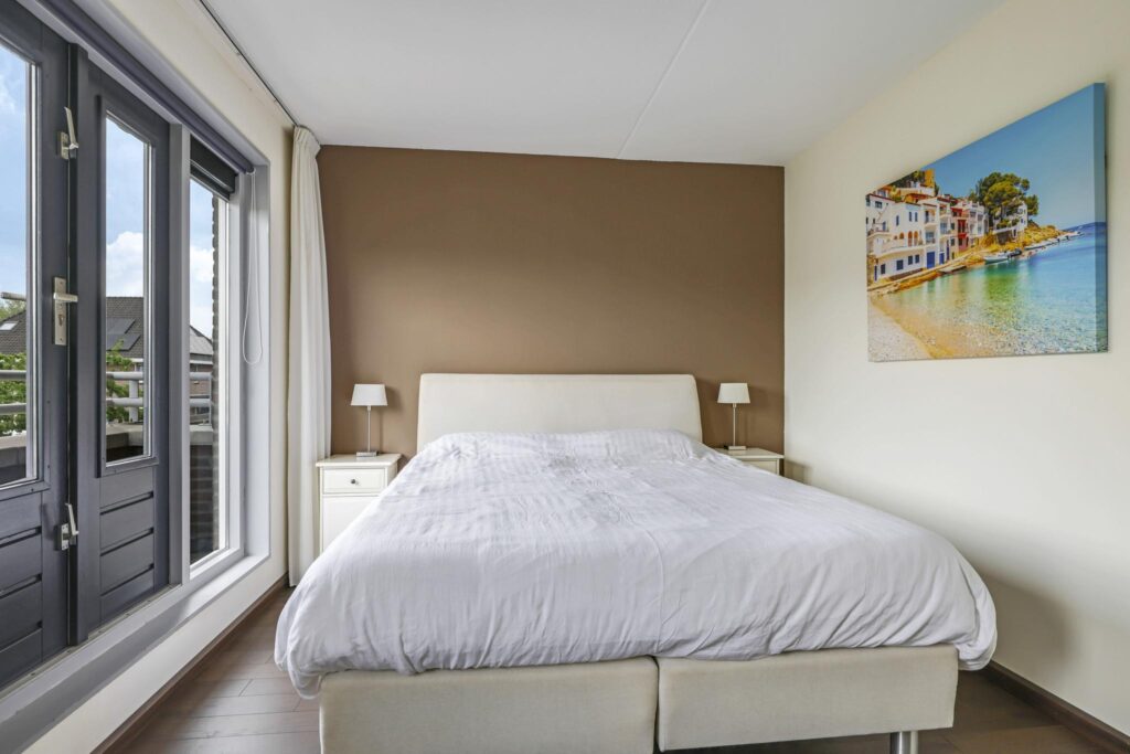 Op de 1e verdieping geeft een prettige overloop toegang tot 3 slaapkamers en de badkamer. De hoofdslaapkamer is verrassend ruim en aan de voorzijde (koele zijde) gelegen. Openslaande deuren naar het balkon geven de kamer net even het onderscheidende element dat we bij veel vergelijkbare woningen in de wijk niet tegenkomen. De 2e en 3e slaapkamer zijn tevens volwaardige kamers en ideaal te gebruiken als kinderkamer of thuiswerkplek.