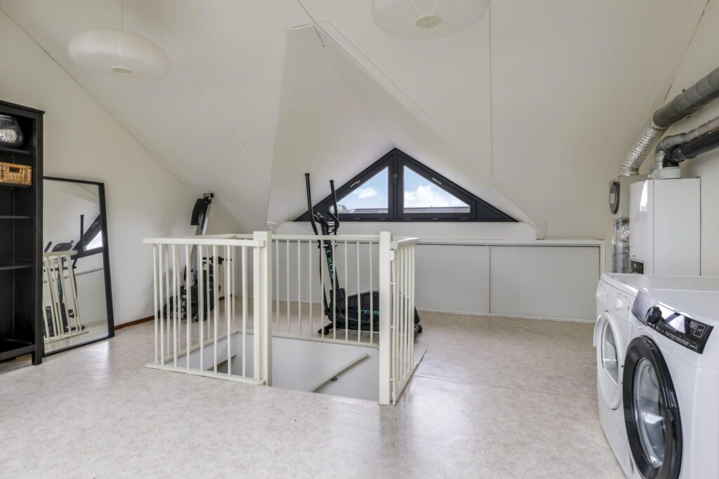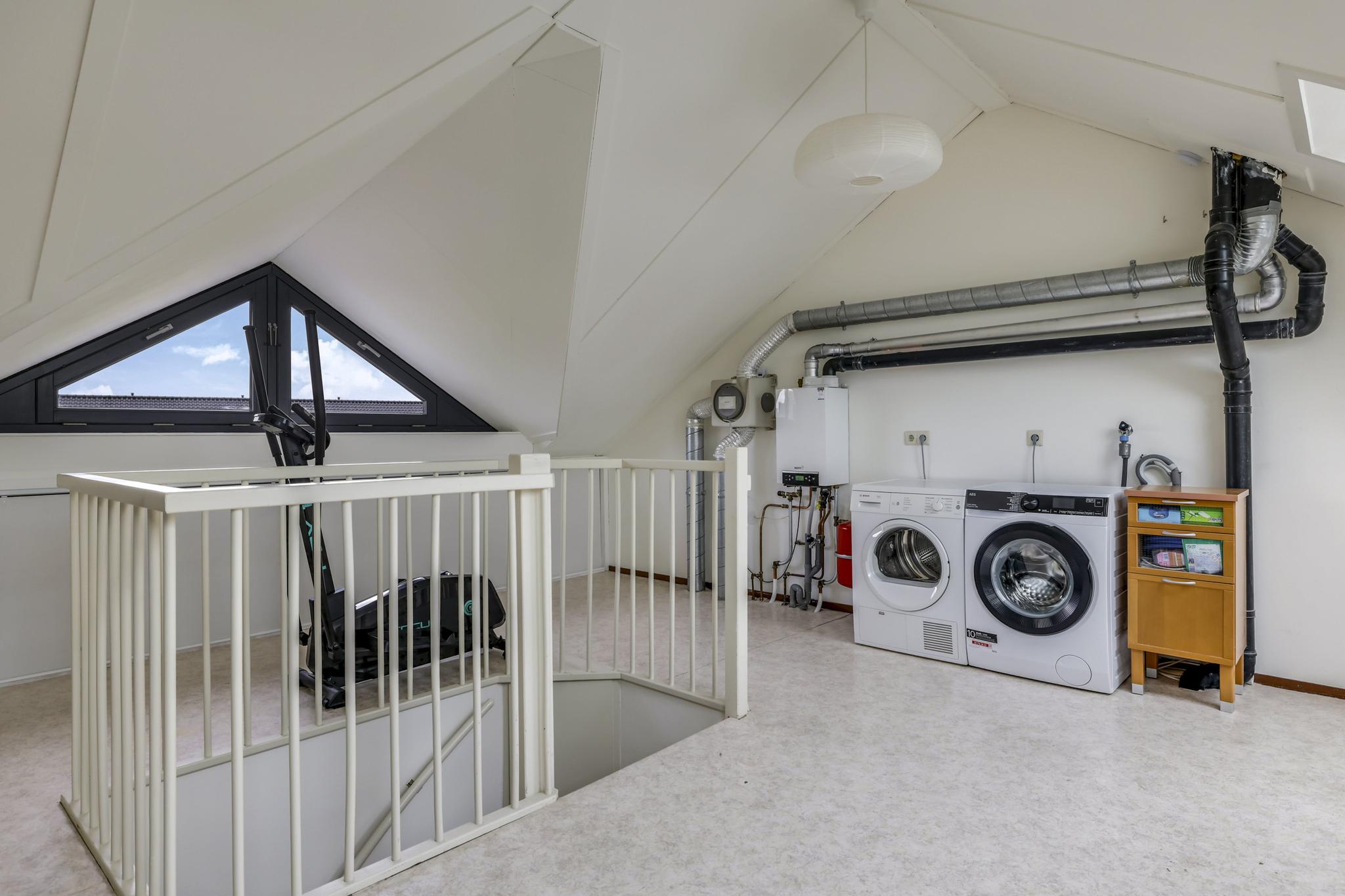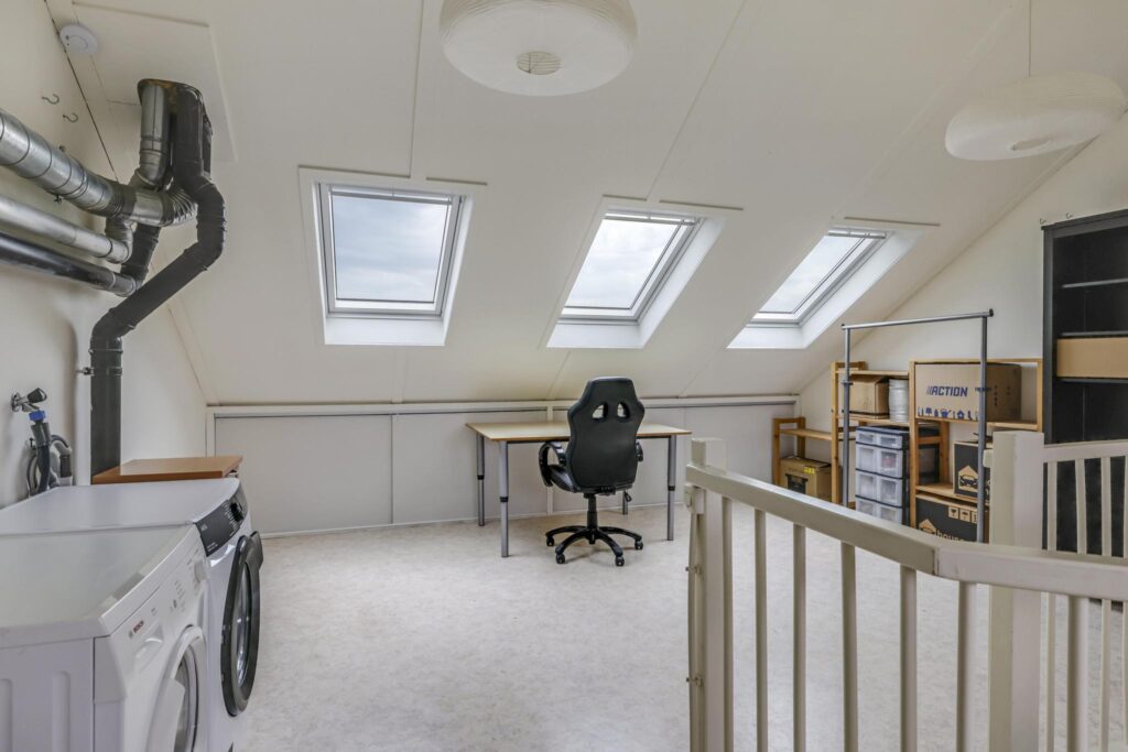Middels een vaste trap is de 2e verdieping bereikbaar. Deze woonlaag betreft een open multifunctionele ruimte. Door de dakkapel aan de voorzijde en maar liefst 3 grote dakramen aan de achterzijde geniet je hier van veel lichtinval. Mocht je het wensen dat zou je deze verdieping goed op kunnen delen in een 4e slaapkamer en een voorzolder. Je treft hier tevens de witgoedaansluitingen en de opstelling van de cv-ketel. Erg handig: onder de schuine dakvlakken zijn knieschotten aanwezig wat zorgt voor veel opbergruimte.