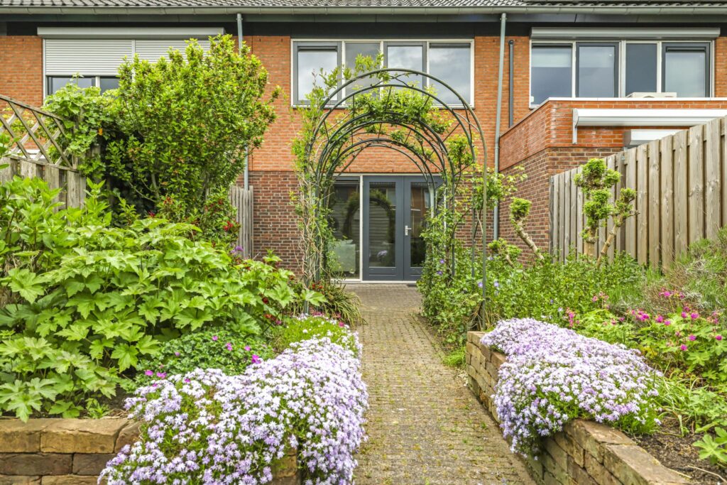 De achtertuin ligt pal op het zuiden en is ingericht met 2 terrassen met daartussen in veel fleurige planten en struiken. Achter in de tuin staat een houten schuur met daarnaast een achterom. De woning ligt aan een autoluwe straat waarbij je aan de voorzijde fijn zicht hebt op een groenstrook.