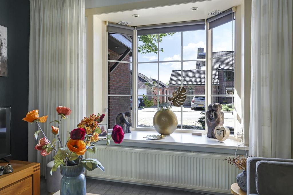 Quote van de makelaar: “Dit is zeker geen doorsnee 2-kapper meer te noemen. Een flinke aanbouw aan de achterzijde t.b.v. de keuken en een sfeervolle erker aan de voorzijde vergroten niet alleen de leefruimte maar zorgen ook voor een niet alledaagse uitstraling. Daarbij zorgen een inpandige garage met vliering, 4 ruime slaapkamers en een volwaardige badkamer dat je geen ruimte tekort zal komen. Ook de tuin is met 17,5m diepte royaal met o.a. een terrasoverkapping en fruitbomen en struiken. Ook kan je hier met gemak om de woning heen doordat er nog circa 3m tuin aan de zijde ligt. Kom jij al deze pluspunten in het echt beleven?”