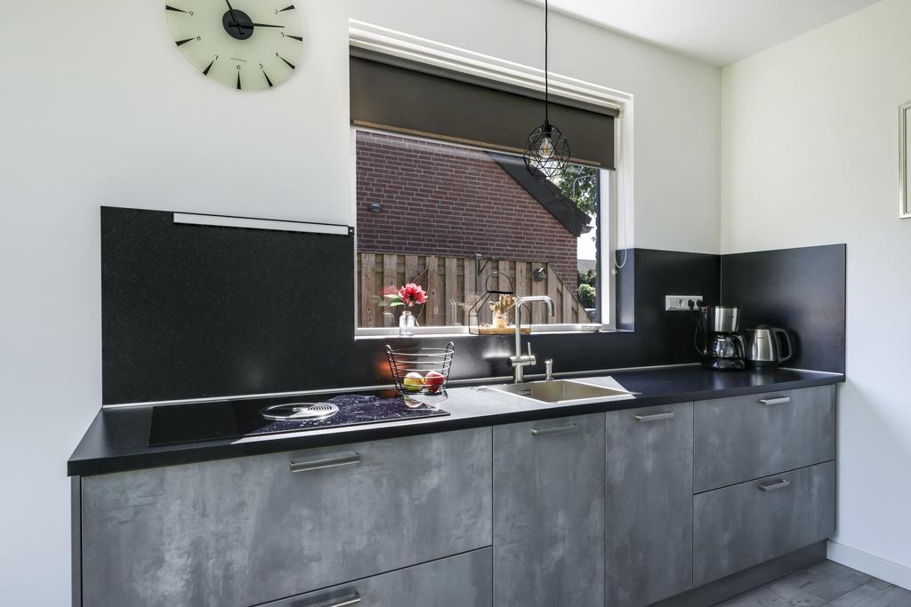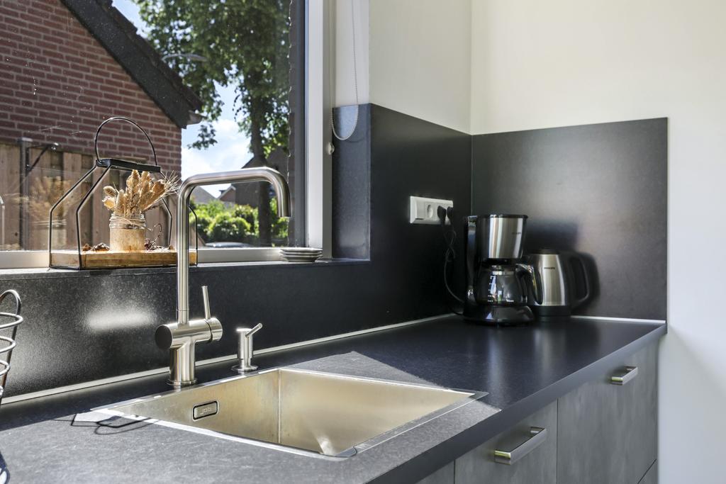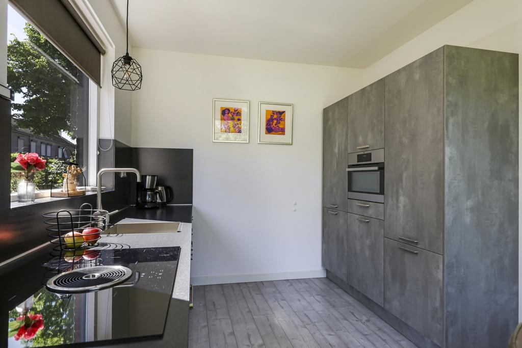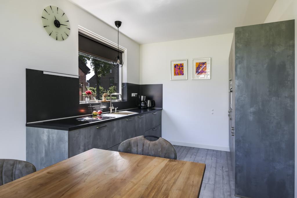Een van de grootste pluspunten van deze woning is de aanbouw aan de achterzijde. De garage is ‘doorgetrokken’ tot aan de achtergevel wat veel extra ruimte heeft opgeleverd. Deze ruimte heeft plaatgemaakt voor een keuken met een 2e eethoek. Het keukenblok is slechts een paar jaar oud en dat zie je aan de moderne inbouwapparatuur en de luxe uitstraling. Er is gekozen voor 2 keukenblokken, een hoge kastenwand met apparatuur, en een tegenovergelegen lager keukenblok met veel werk- en kookruimte. De inbouwapparatuur bestaat uit een Bora inductie kookplaat met geïntegreerde afzuiger, een hoge koelkast en een combi-oven/magnetron. Opvallend zijn de grote ramen waarbij er 1 doorloopt tot aan de grond. Dit maakt de ruimte erg licht en comfortabel.
