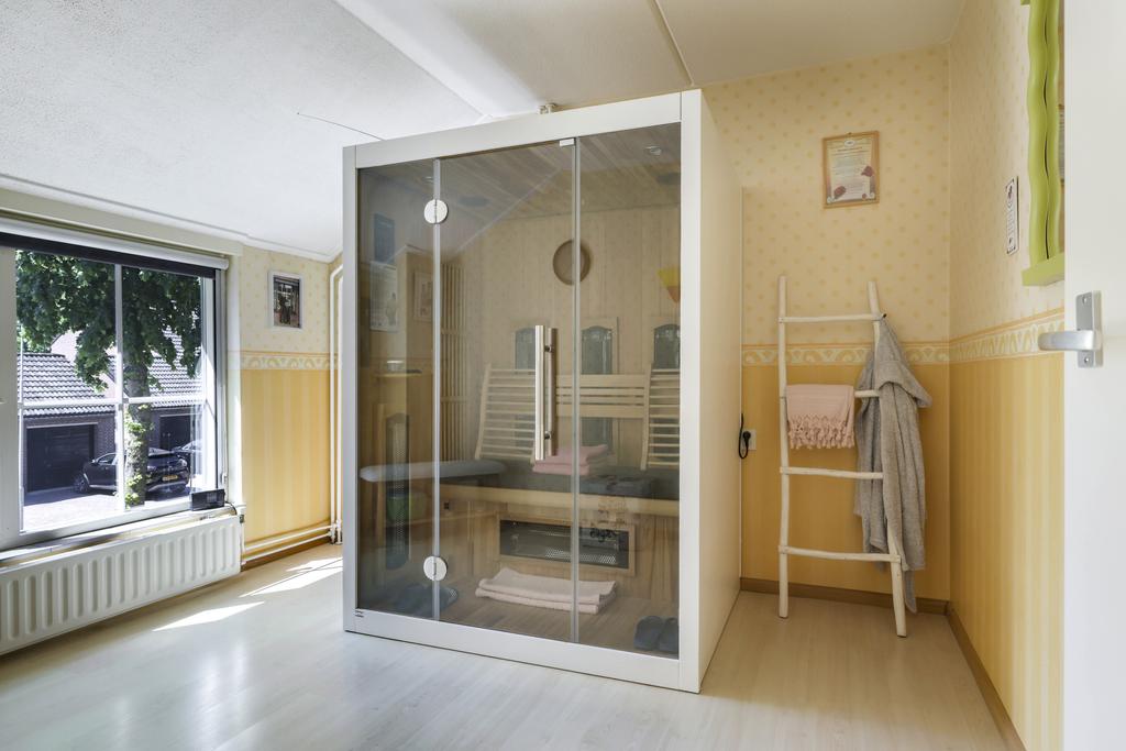 Op de 1e verdieping schakelt de overloop 3 slaapkamers en de badkamer aan elkaar. De slaapkamers zijn allen goed gemeten en zijn respectievelijk 15m², 10m² en 7m² groot. Door de rechten wanden zijn de slaapkamers optimaal in te richten. Op de 3e slaapkamer zorgt een vaste kastenwand voor veel praktische opbergruimte waardoor je hier geen separate kast hoeft te plaatsen. De sauna op de middelste slaapkamer wordt ter overname aangeboden.