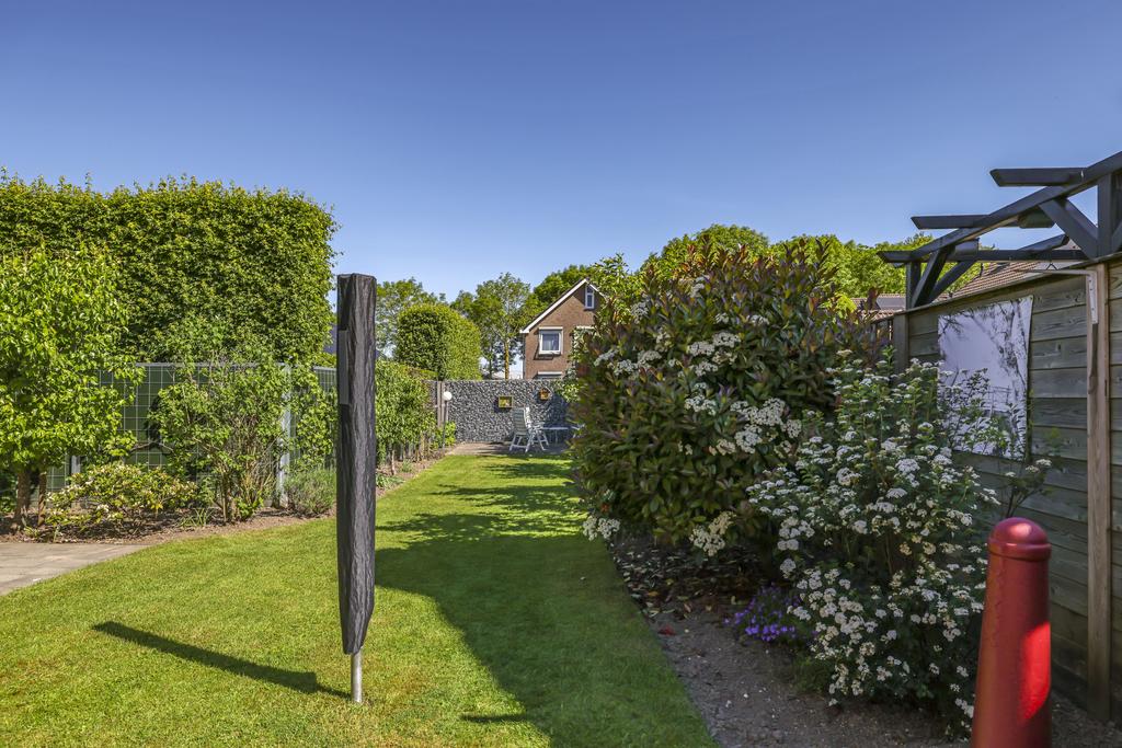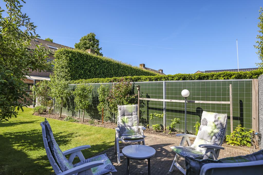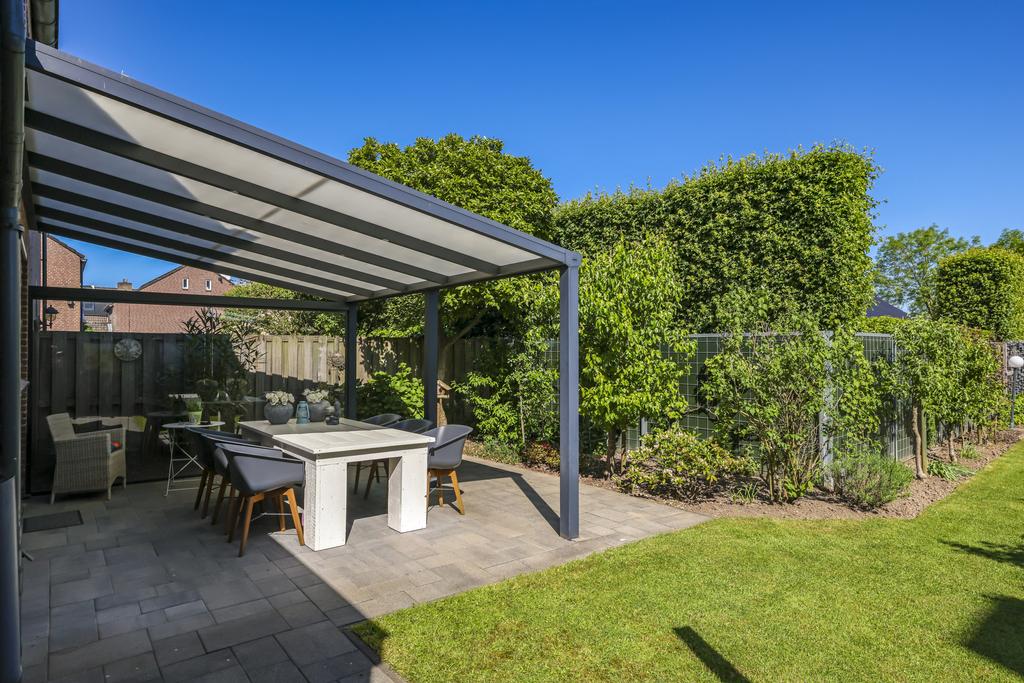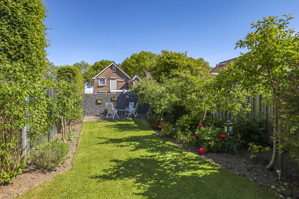 De tuin ligt er opvallend verzorgd bij met onder meer een terrasoverkapping aan de achtergevel, een strak gazon, meerdere fruitbomen en struiken en een 2e terras in de zon. Naast de woning is nog eens bijna 3 meter tuin aanwezig waardoor je eenvoudig om de woning kan.