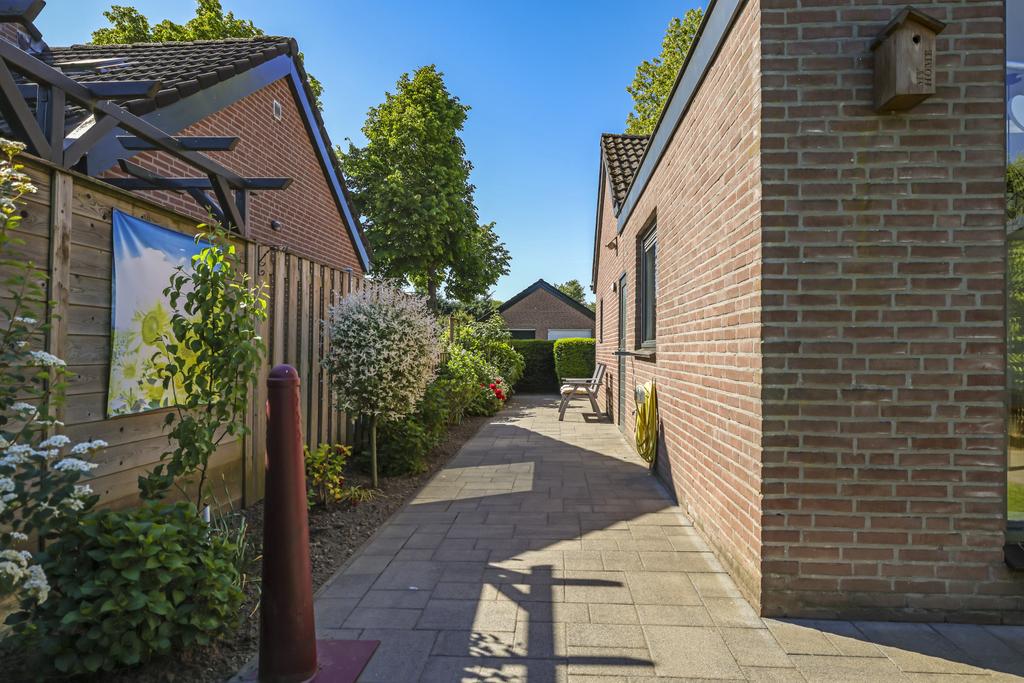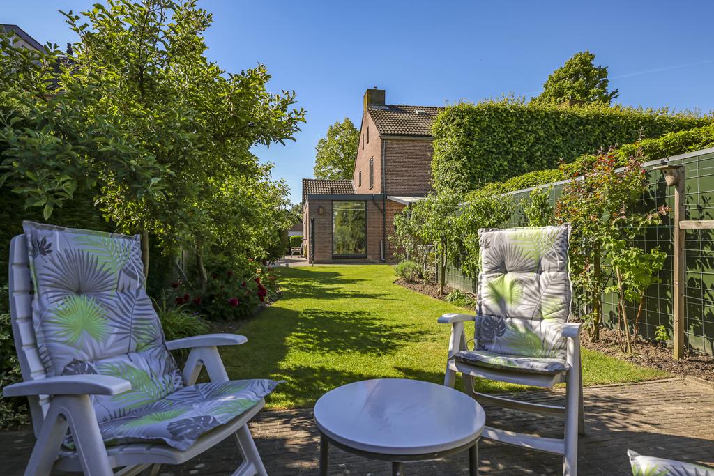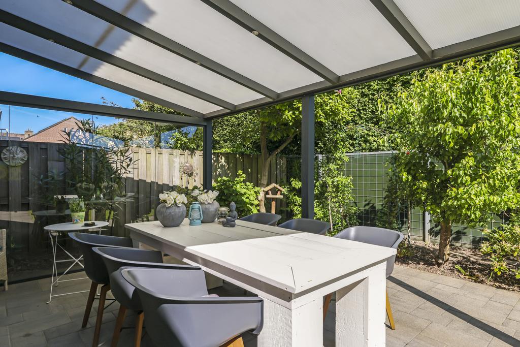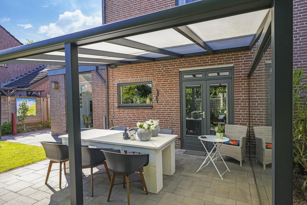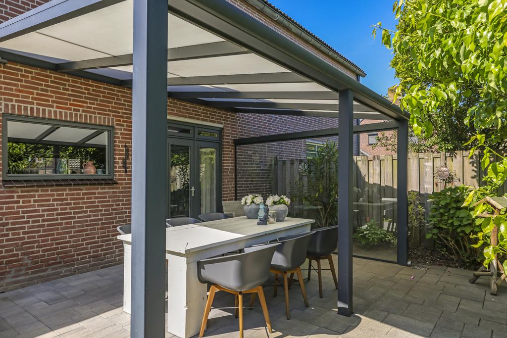 De tuin ligt er opvallend verzorgd bij met onder meer een terrasoverkapping aan de achtergevel, een strak gazon, meerdere fruitbomen en struiken en een 2e terras in de zon. Naast de woning is nog eens bijna 3 meter tuin aanwezig waardoor je eenvoudig om de woning kan.
