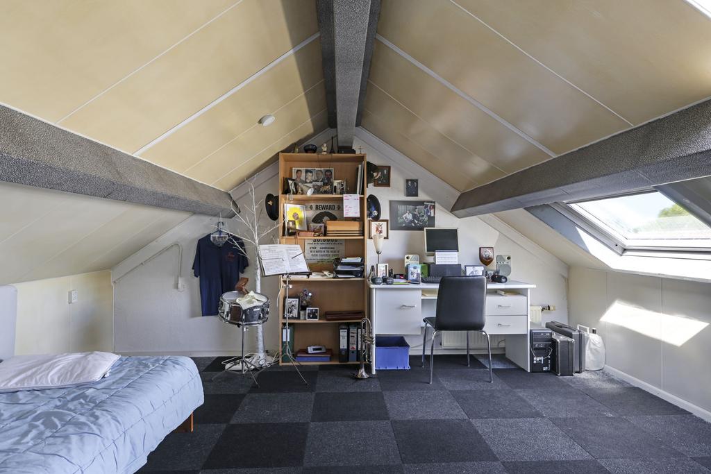 De 4e slaapkamer is met circa 10m² (gemeten vanaf 1,5m hoogte) zeer volwaardig te noemen. Mocht je een grotere kamer wensen, dan zou je hier zelfs nog een dakkapel kunnen plaatsen. In de huidige situatie zijn er 2 dakramen geplaatst welke zorgen voor de nodige lichtinval. Omdat er boven de garage als een bergzolder aanwezig is, kan je deze woonlaag volledig benutten als leefruimte.
