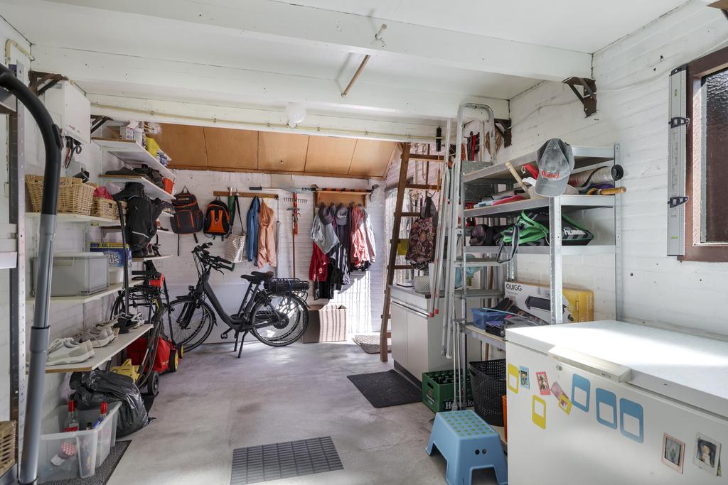 Nog een pluspunt van deze woning is de inpandige garage. Deze ruimte is van binnenuit bereikbaar waardoor je hier veel praktische opbergruimte hebt en je bijvoorbeeld een extra vriezer of koelkast binnen handbereik kan plaatsen. De kanteldeur aan de voorzijde is niet meer in gebruik, uiteraard zou je hier nieuwe deuren kunnen plaatsen indien je direct vanuit de straat de garage wilt bereiken. Aan de zijkant is een tuindeur aanwezig. Opvallend is de extra vliering is boven de garage aanwezig is. De nokhoogte is circa 2 meter waardoor deze ruimte nog verrassend praktisch is.