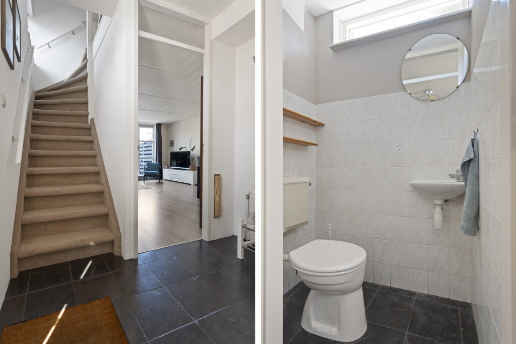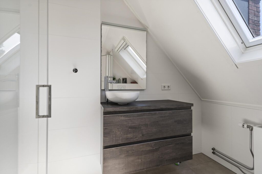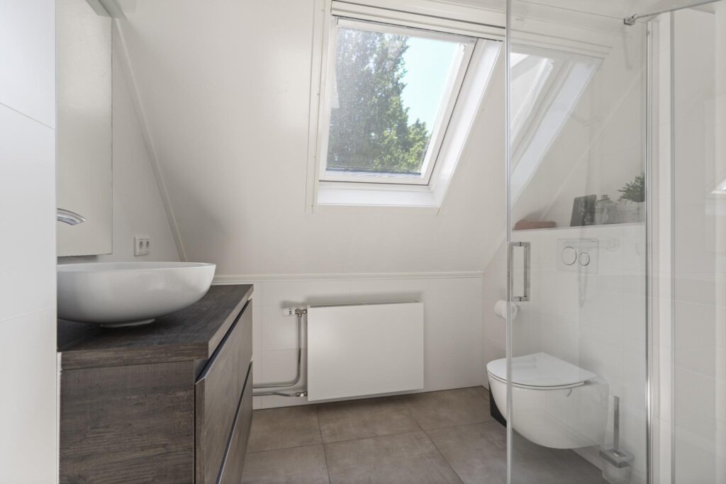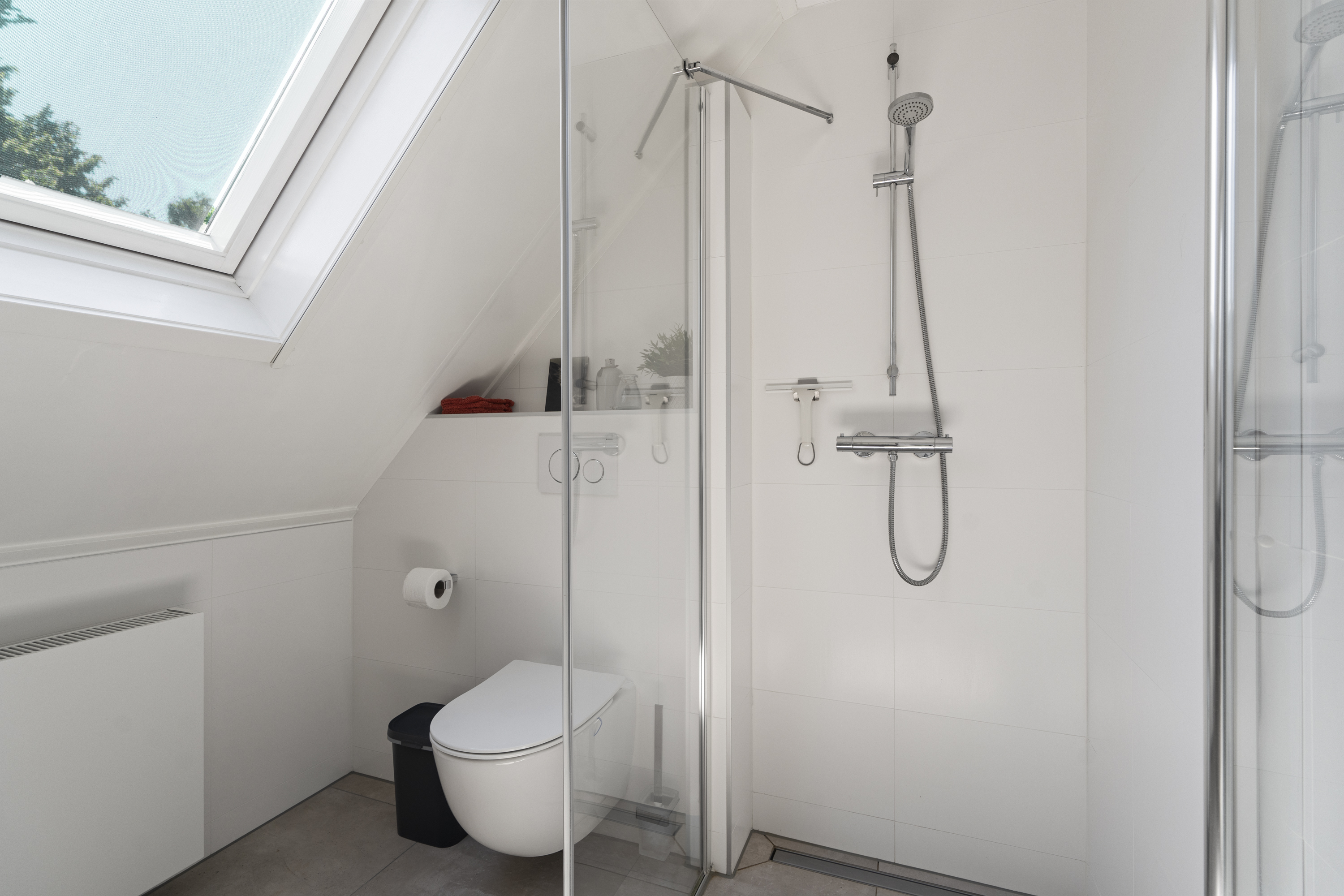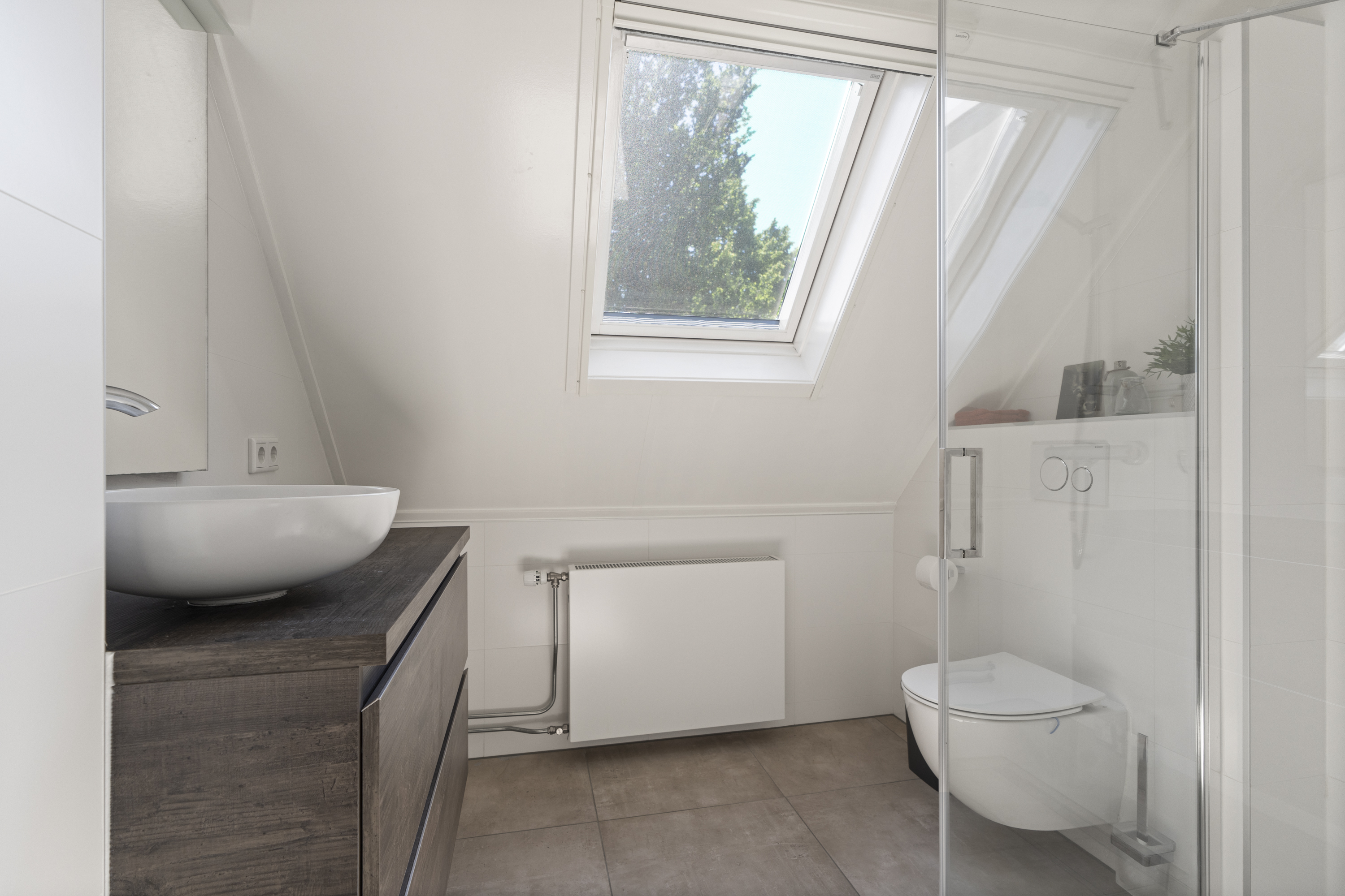 De badkamer is in 2020 vernieuwd en dus maar een paar jaar oud. Dit zie je dan ook zeker terug in de uitstraling en de netheid van deze ruimte. Er is gekozen voor groot formaat tegels in de klassieke combinatie van wit en aardetinten. De ruimte is optimaal ingericht met een inloopdouche met drainafvoer, een 2e (zwevend geplaatst) toilet en een wastafelmeubel. Het meubel is voorzien van een stijlvolle waskom en 2 lades voor veel opbergruimte. Een groot dakraam zorgt voor veel lichtinval en een fijne ventilatiemogelijkheid.