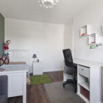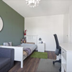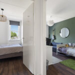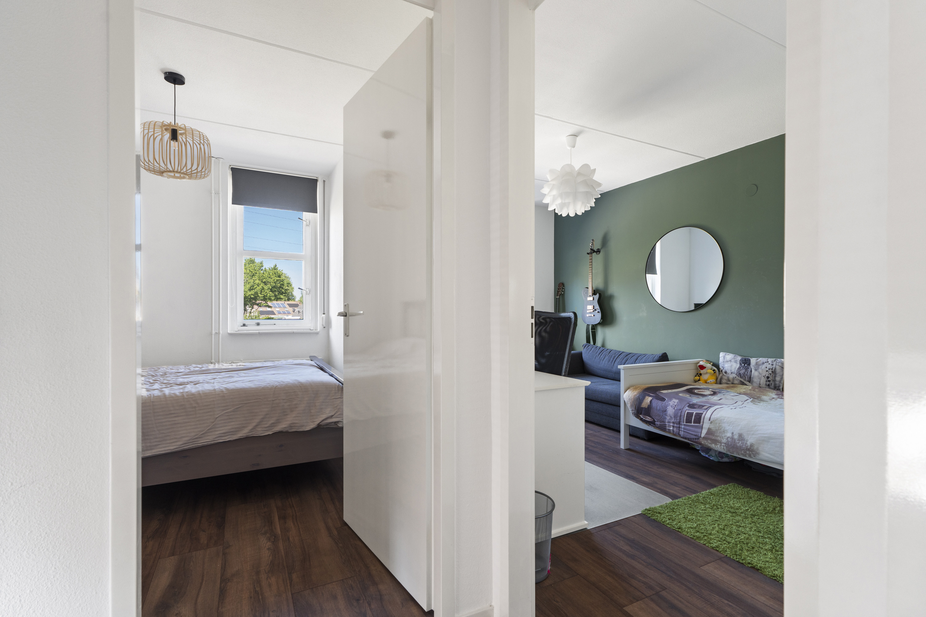 Via de trapopgang in de hal bereiken we de 1e verdieping. Hier tref je 3 slaapkamers en de badkamer. In 2020 is de gehele verdieping verbouwd, waarbij de badkamer is verplaatst en de indeling van de 1e verdieping logischer ingedeeld kon worden. De slaapkamers zijn respectievelijk 12m², 11m² en 7m² groot en hebben allen rechte muren waardoor de kamers optimaal in te richten zijn. Alle 3 de slaapkamers zijn 100% te verduisteren middels de aanwezige rolluiken. Daarbij zijn de kamers voorzien van eenzelfde laminaatvloer wat zorgt voor een eenduidig geheel.