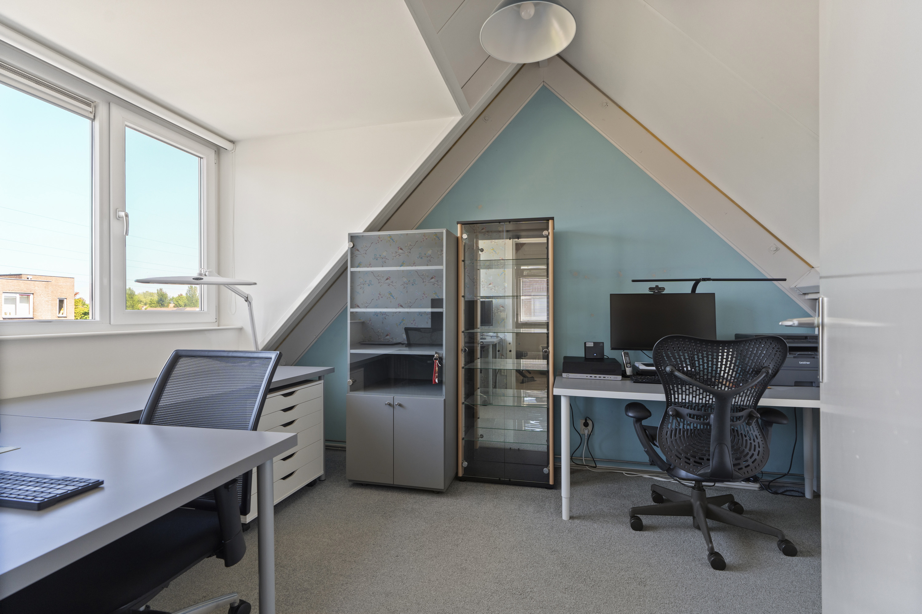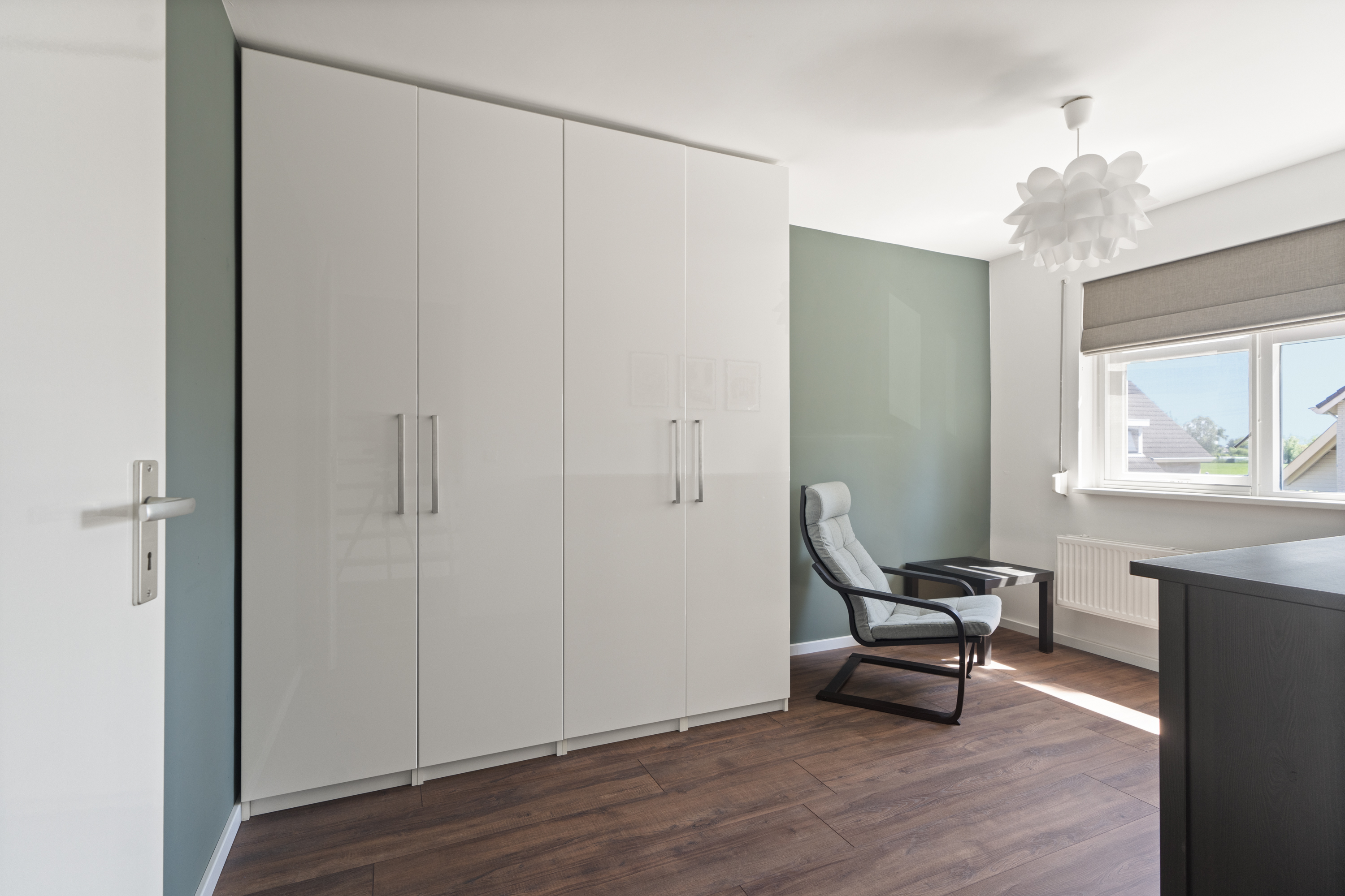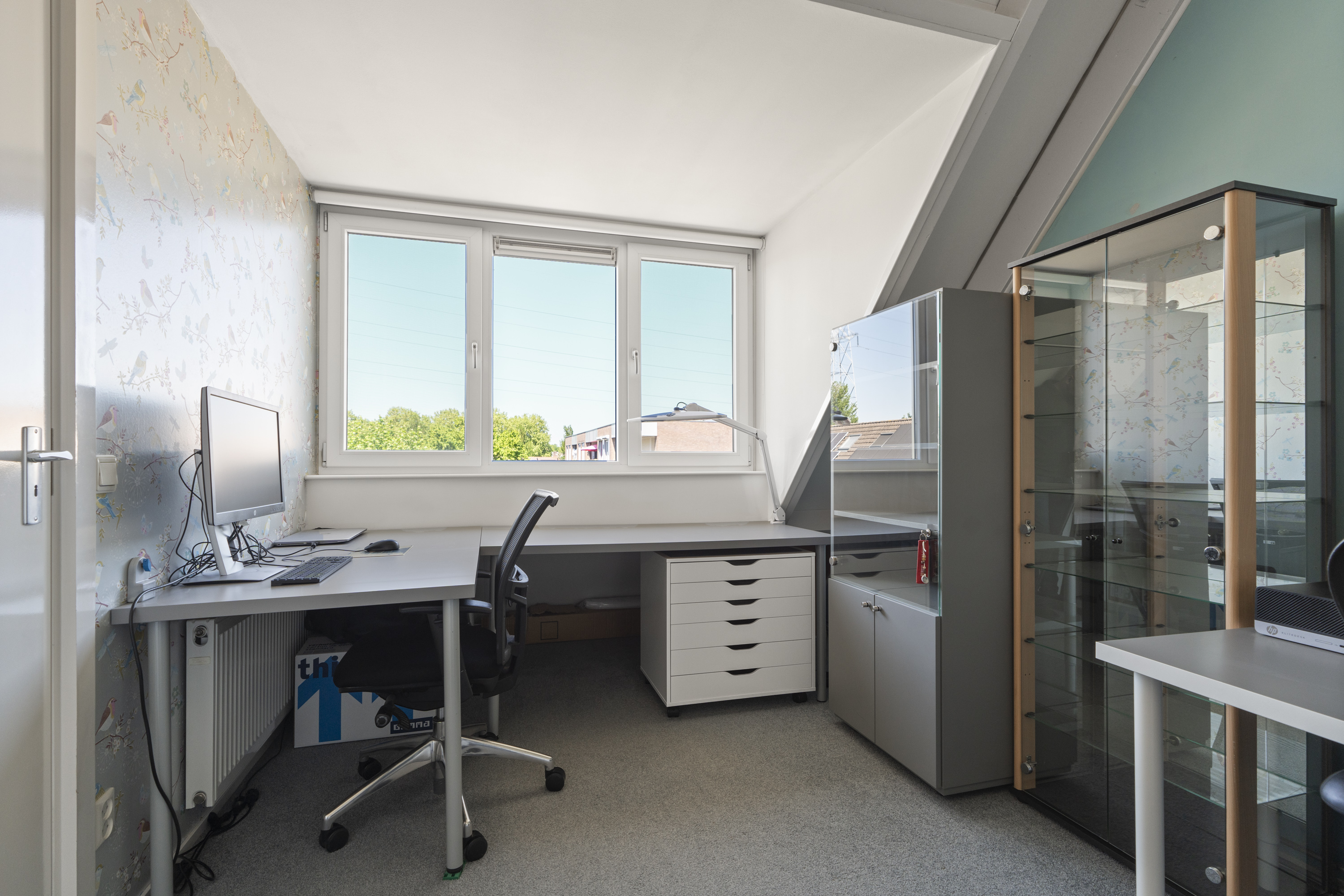 De 2e verdieping is, mede door de hoge nok verrassend ruim te noemen. Deze woonlaag is dan ook ingedeeld in een 4e slaapkamer en een voorzolder. De slaapkamer is ook nog vergroot doordat hier een brede dakkapel is geplaatst. De dakkapel is in kunststof uitgevoerd waardoor het een onderhoudsvriendelijk karakter heeft. Dit zorgt voor meer praktische leefruimte en veel lichtinval. Onder het schuine dakvlak tref je achter schuifpanelen veel opbergruimte.
