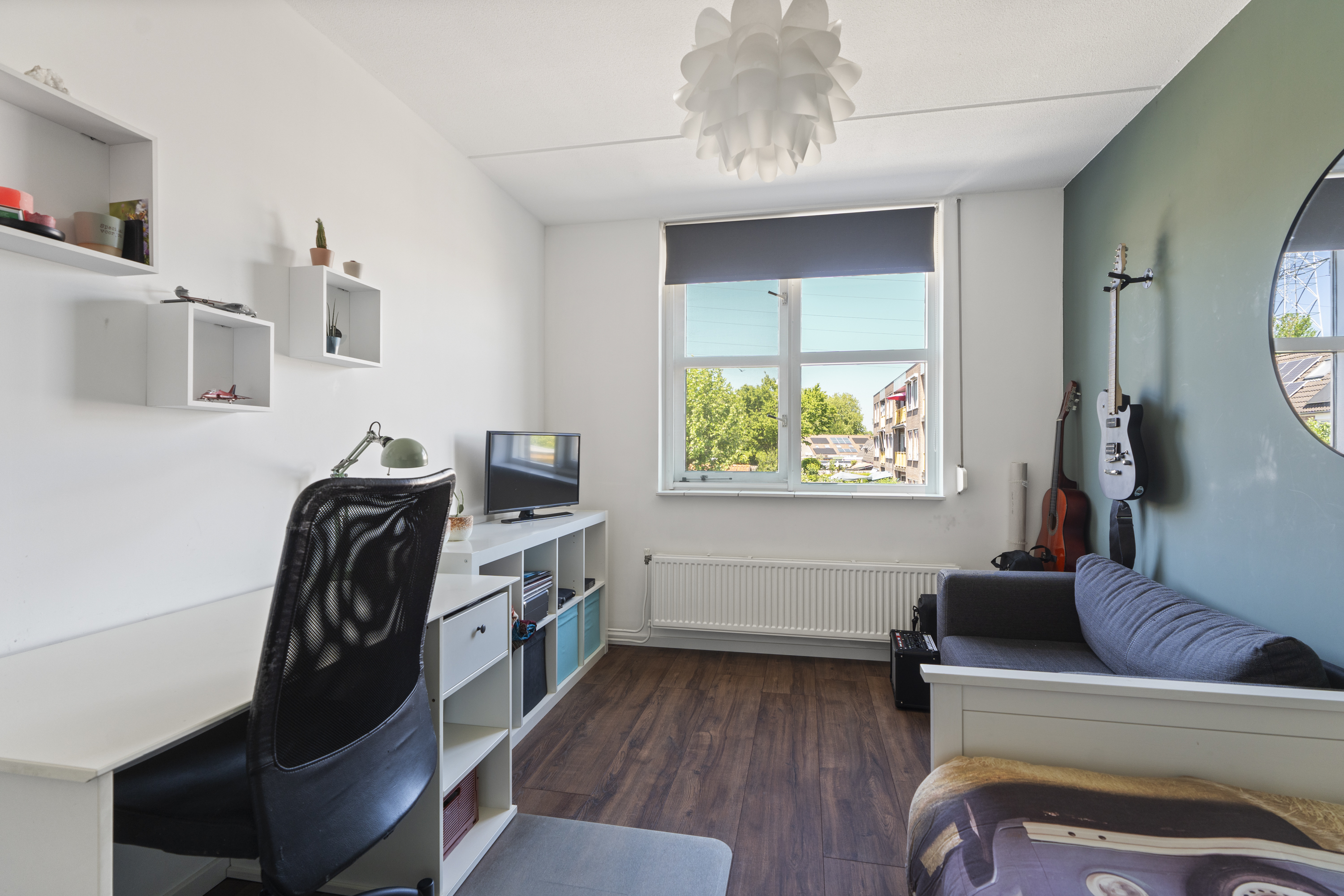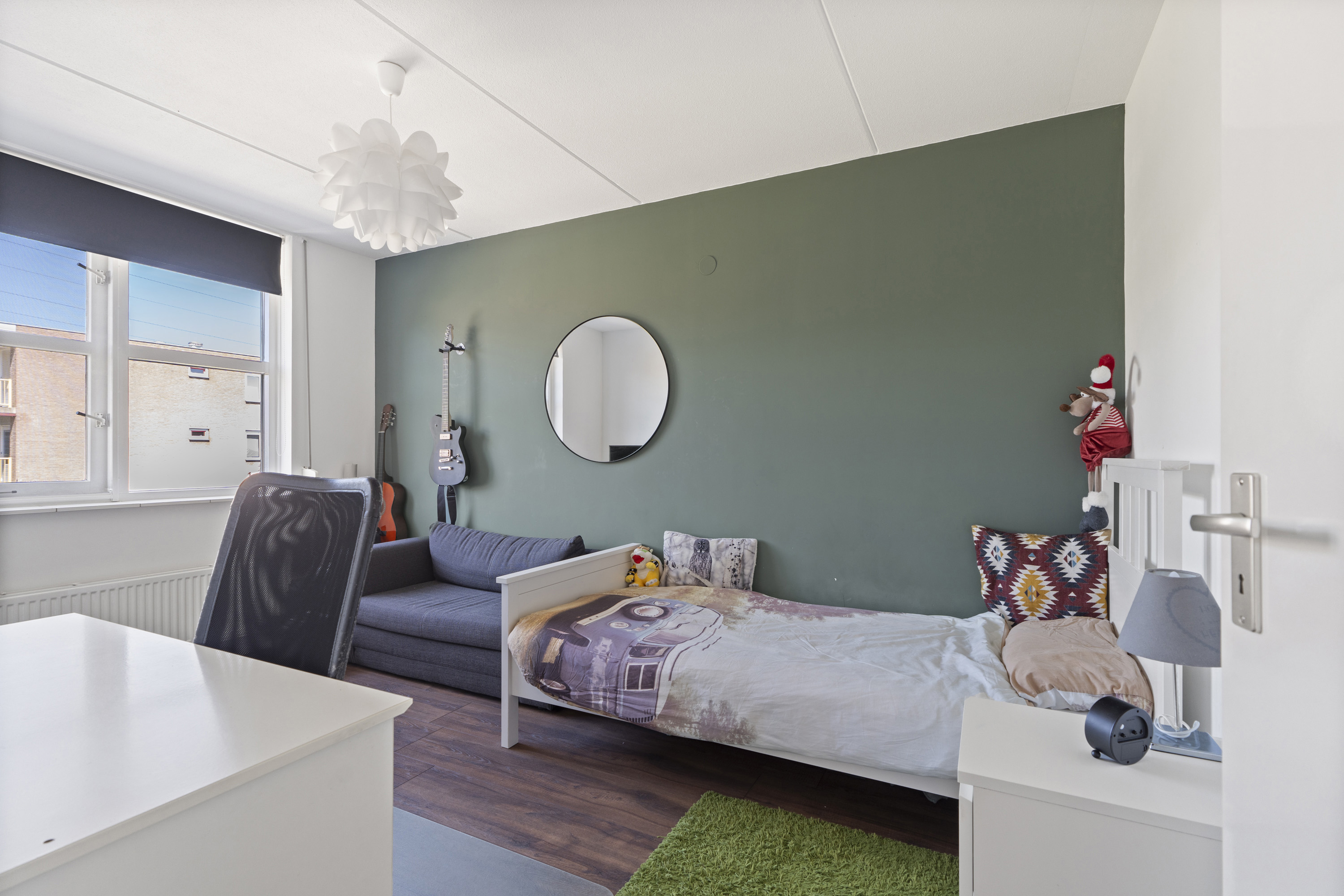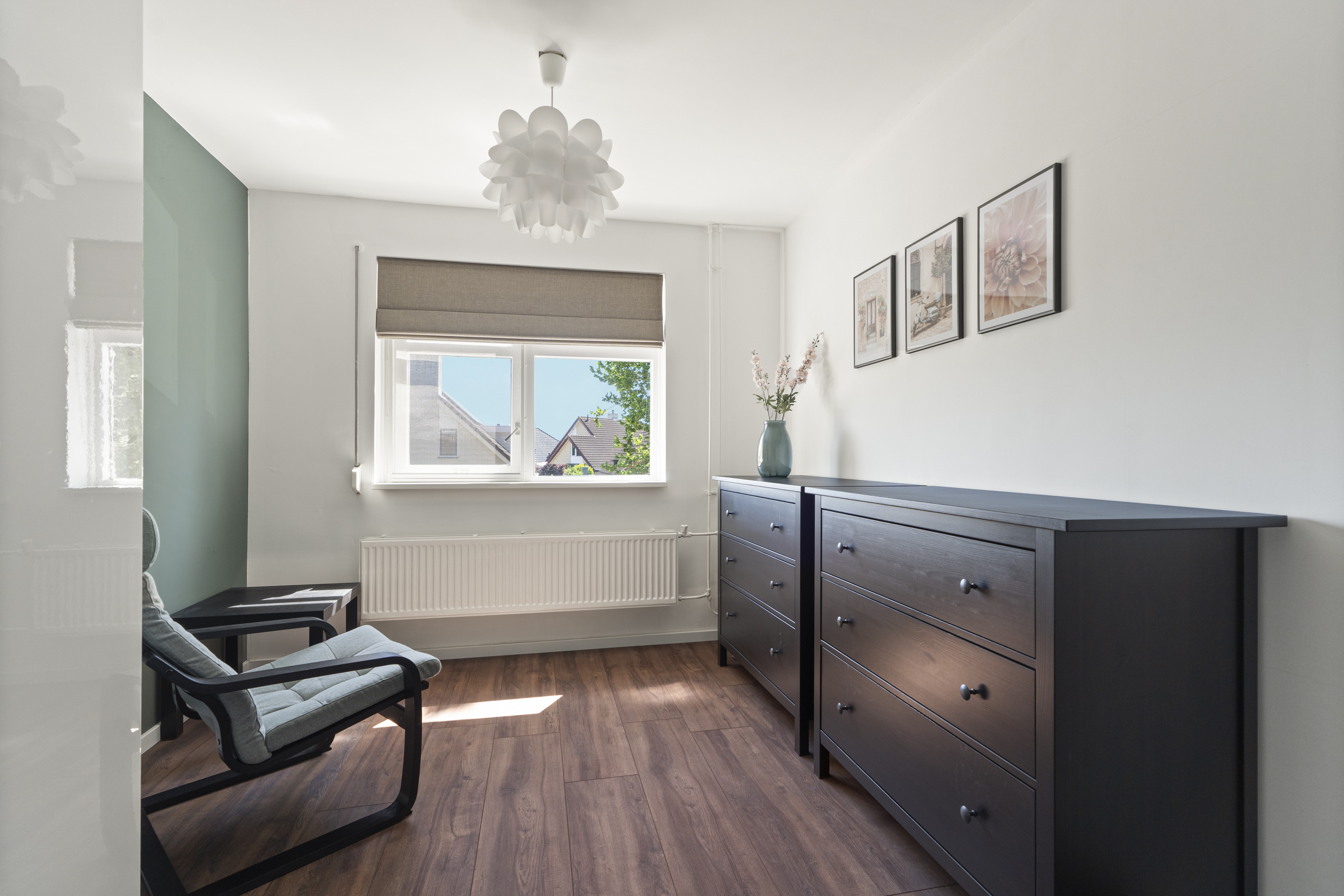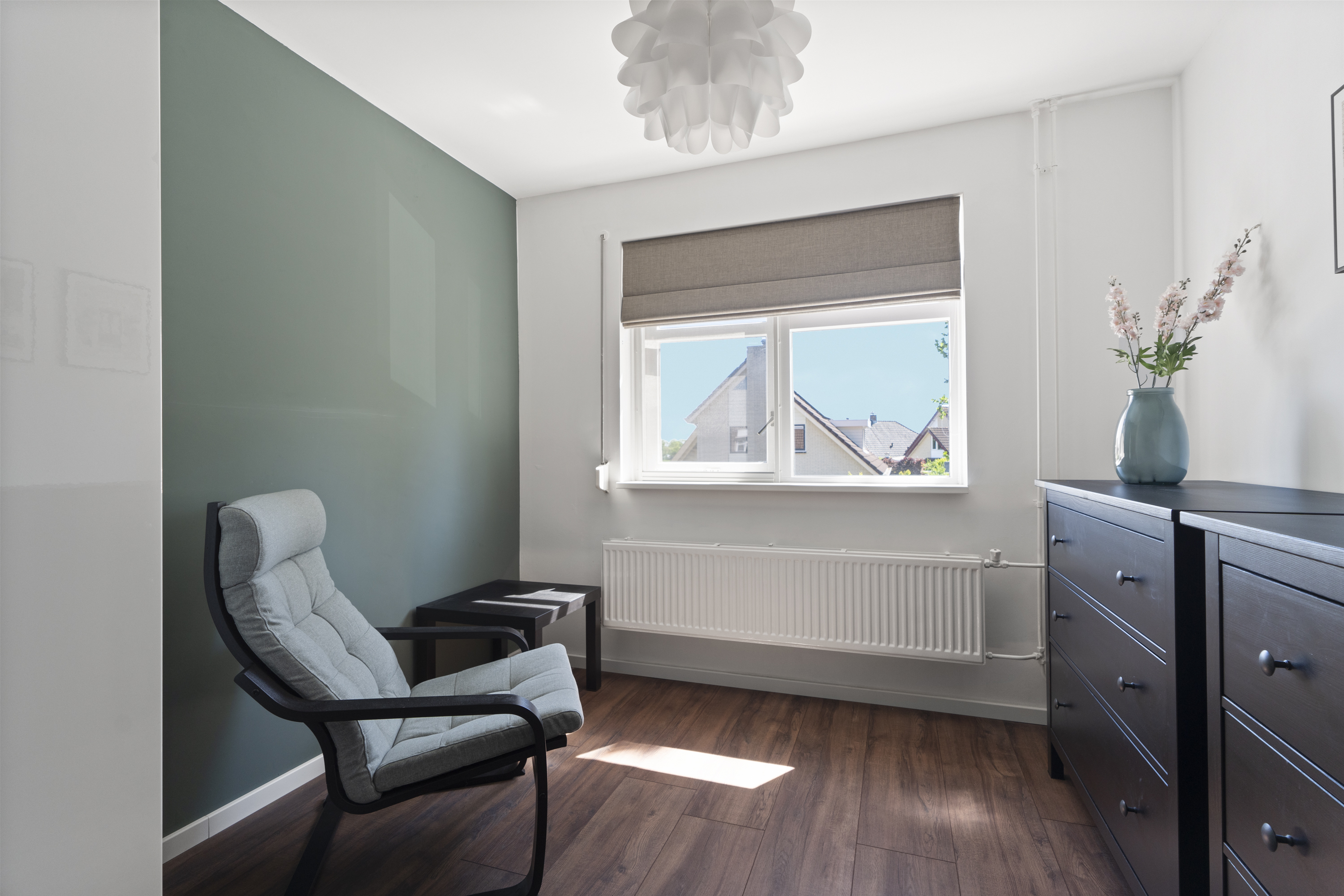 De 2e verdieping is, mede door de hoge nok verrassend ruim te noemen. Deze woonlaag is dan ook ingedeeld in een 4e slaapkamer en een voorzolder. De slaapkamer is ook nog vergroot doordat hier een brede dakkapel is geplaatst. De dakkapel is in kunststof uitgevoerd waardoor het een onderhoudsvriendelijk karakter heeft. Dit zorgt voor meer praktische leefruimte en veel lichtinval. Onder het schuine dakvlak tref je achter schuifpanelen veel opbergruimte.