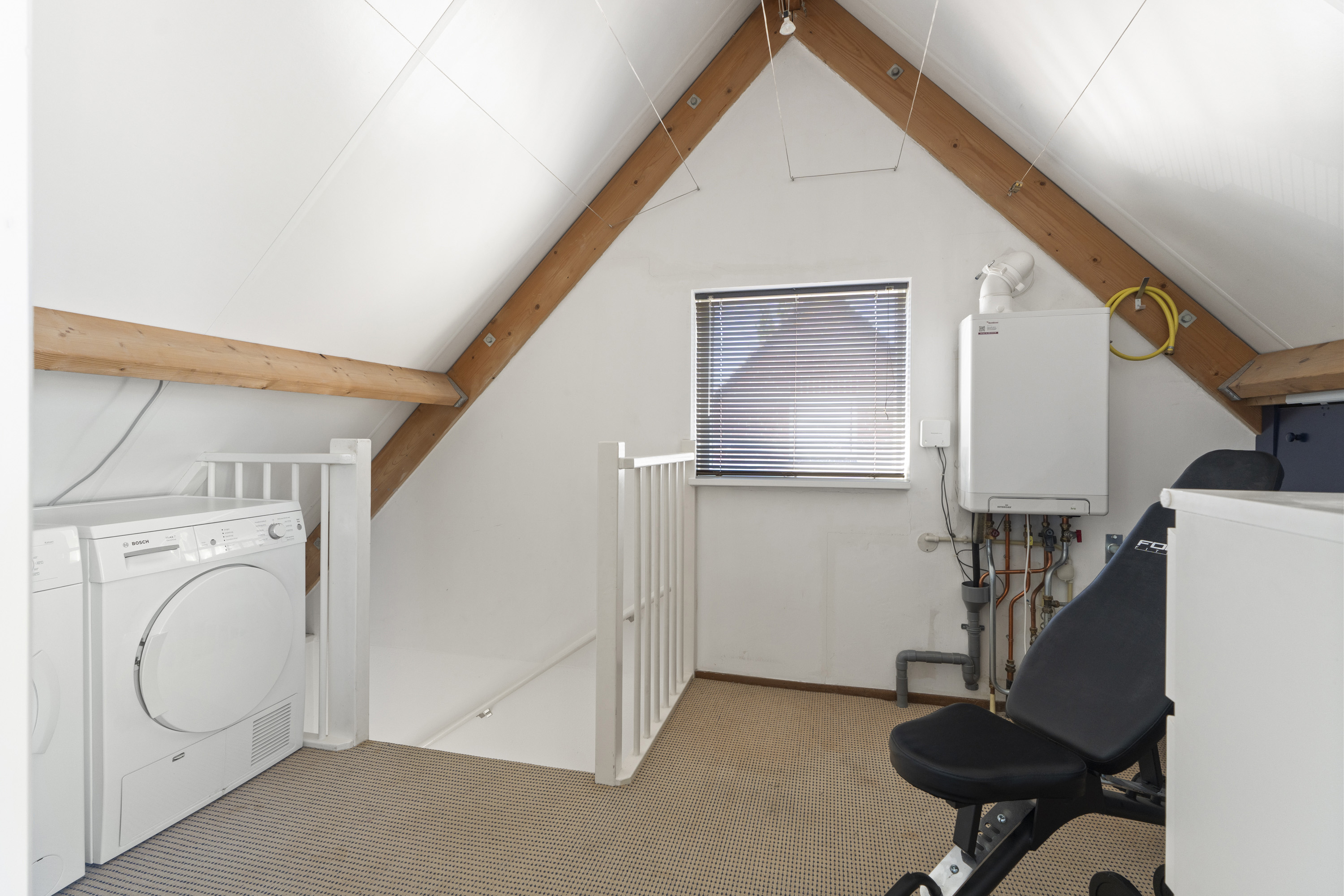 Voorzolder met opstelling cv-ketel en witgoedaansluitingen