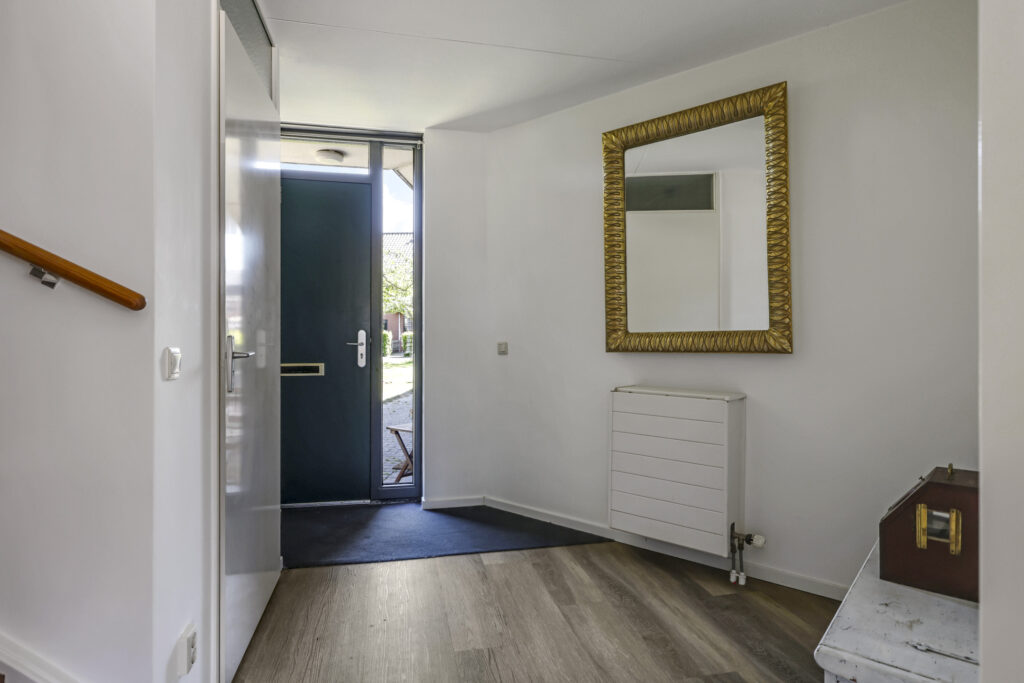 De tuin loopt breed uit en zorgt dan ook veel mogelijkheden voor bijvoorbeeld meerdere zithoeken of juist een speeltoestel voor de kinderen. Deze woning is gelegen aan een rustig, kindvriendelijk en groen opgezet hofje met fruitbomen voor de deur. Zowel de dorpskern (met winkels en horeca) alsmede het recreatie-/wandelgebied ‘De Hetersche Waarden’ liggen op loopafstand.