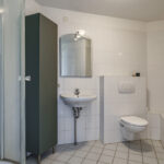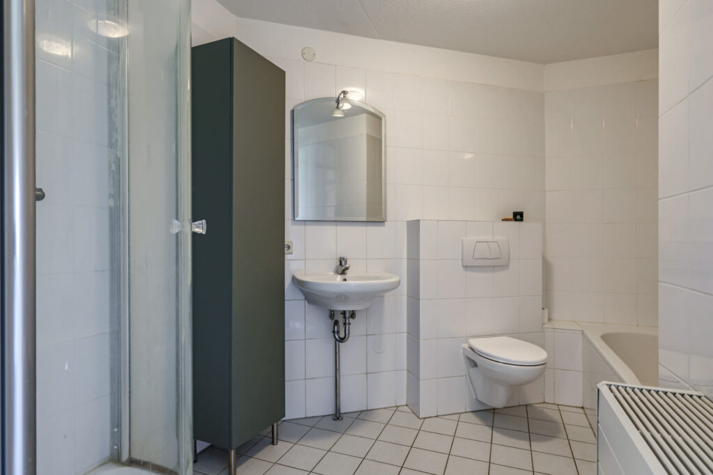 Net als de rest van de woning is ook de badkamer goed bemeten. De badkamer is wat basis afgewerkt maar je zult zien dat je met gemak al het wenselijke sanitair kan plaatsen. Er is dan ook niet voor niets gekozen voor een ligbad én een separate douche. Ook het toilet en een wastafelmeubel zijn aanwezig in de ruimte. Om goed te kunnen ventileren is er mechanische ventilatie aanwezig.