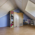 Knieschot opbergruimte onder de schuine dakvlakken.