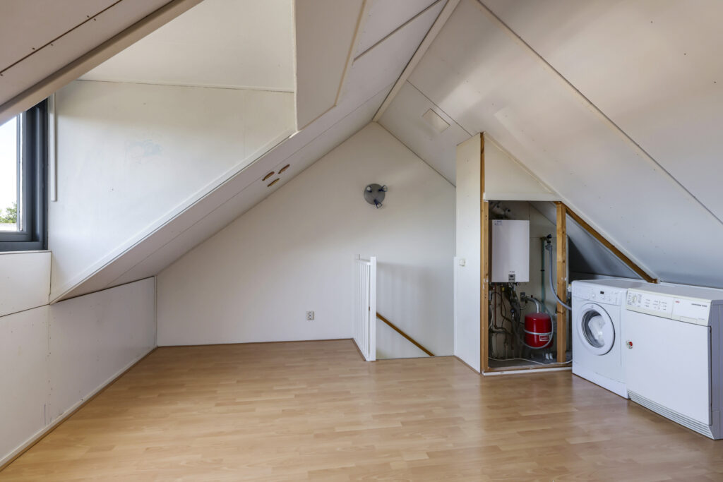 Via de 2e trapopgang kom je op de 2e verdieping terecht. Dit betreft één open multifunctionele ruimte. Er is een dakkapel geplaatst wat de ruimte nog praktischer maakt. Mocht je het wensen dan kan je deze woonlaag eenvoudig opdelen in een voorzolder en een 4e slaapkamer. Hier zijn ook de opstelling van de cv-ketel en de witgoedaansluitingen terug te vinden.
