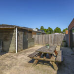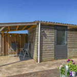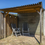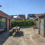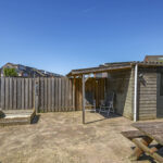 Dat het de woning en daarmee dus ook het perceel in de breedte uitloopt zie je wederom goed terug in de achtertuin. Deze is aanzienlijk breder dan de standaard van de woningen aan de Bretagnesingel. Dit zorgt voor veel meer mogelijkheden zoals het creëren van meerdere zithoeken of het plaatsen van een zwembad of speeltoestel. In de tuin staat een houten (fietsen)berging welke is voorzien van elektra. Ernaast is een overkapping waar je beschut kan zitten. Ook is er een achterom aanwezig waarbij je direct uit komt op de achtergelegen parkeerhaven.