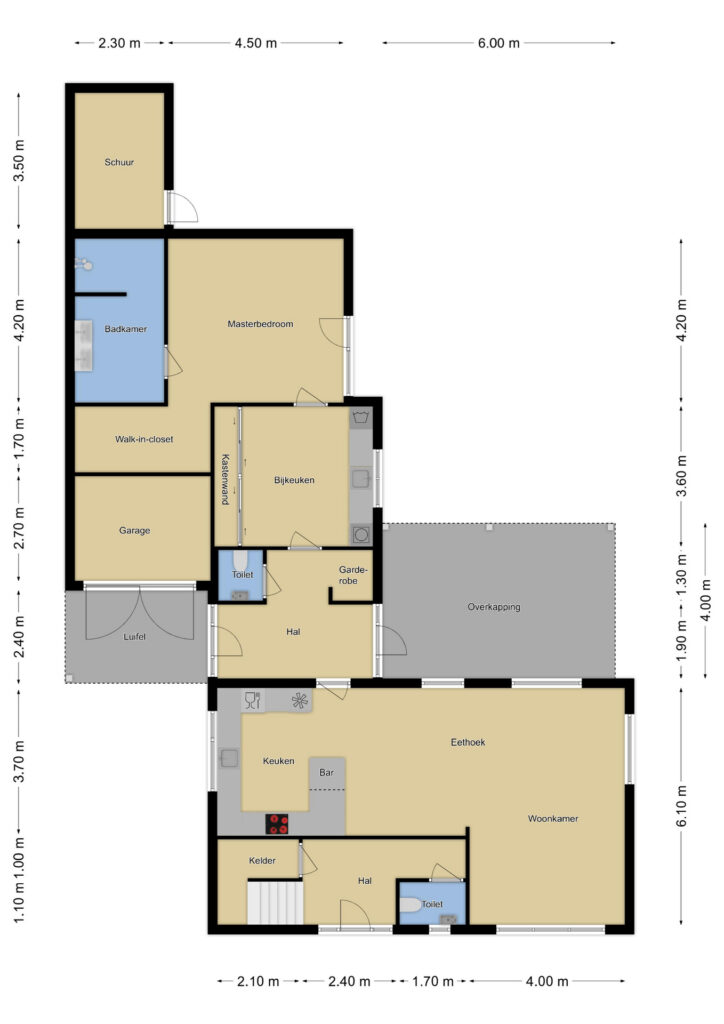 Er zijn meerdere aspecten die deze woning zo uniek maken. Eén van die aspecten is dat deze woning zo veelzijdig te bewonen is. Doordat de woning is opgedeeld in 2 wooneenheden, is de woning voor een zeer grote doelgroep interessant. We zouden het ook een generatie- of kangaroowoning kunnen noemen. Als makelaar ervaren wij steeds meer de vraag van woningzoekers naar huizen die dubbel te bewonen zijn, bijvoorbeeld door een gezin met kinderen en dat de ouders erbij in komen wonen, maar dan wel ‘gescheiden’ van elkaar. Aan de andere kant is het voor starters bijzonder lastig om te slagen op de woningmarkt waardoor ‘twintigers’ steeds langer thuis blijven wonen. Bij de woning kan een jong volwassene langer thuis blijven wonen, maar dan toch op zich zelf en met eigen voorzieningen.