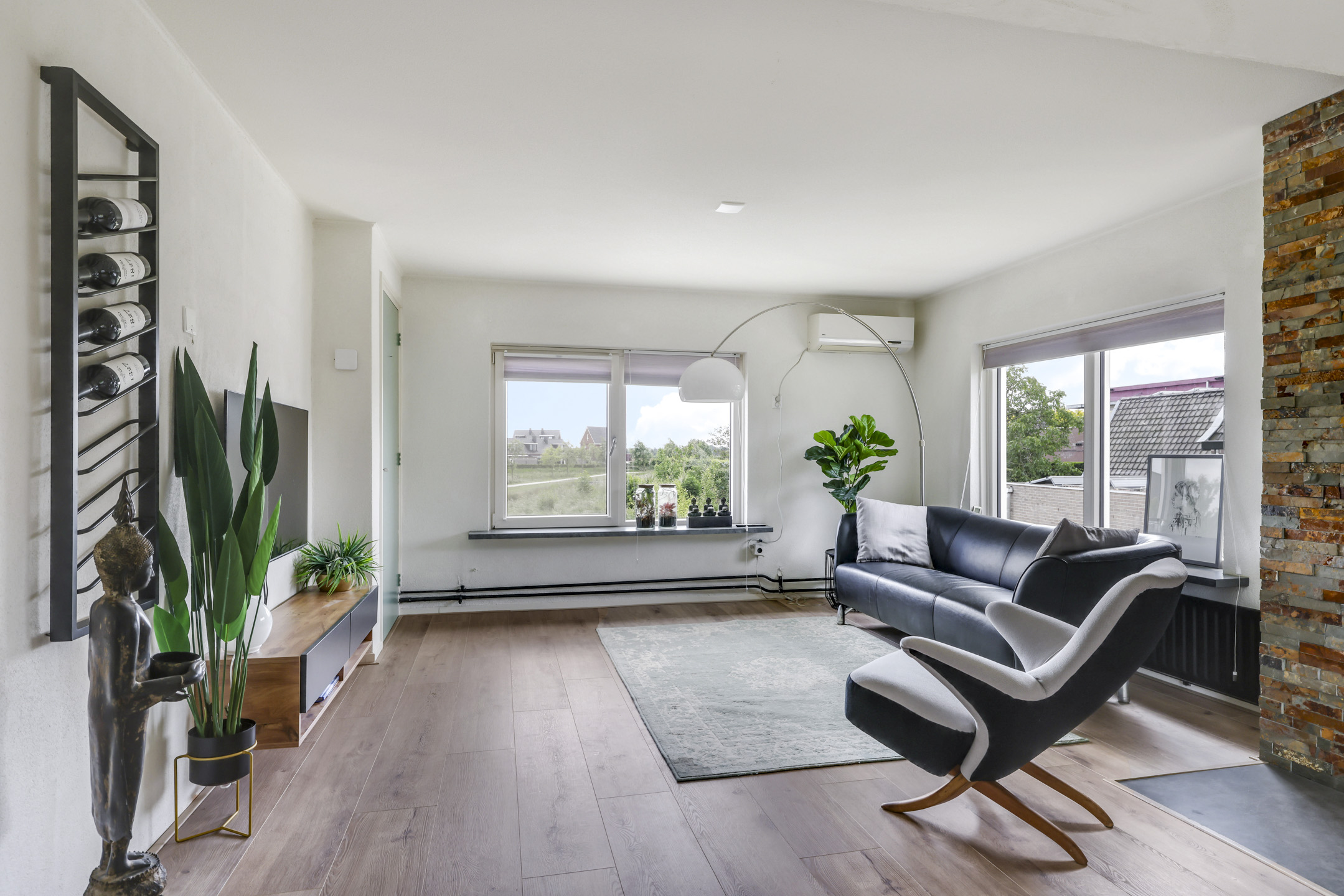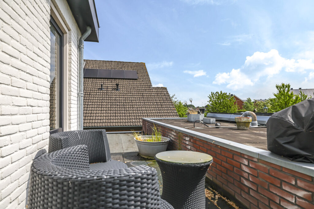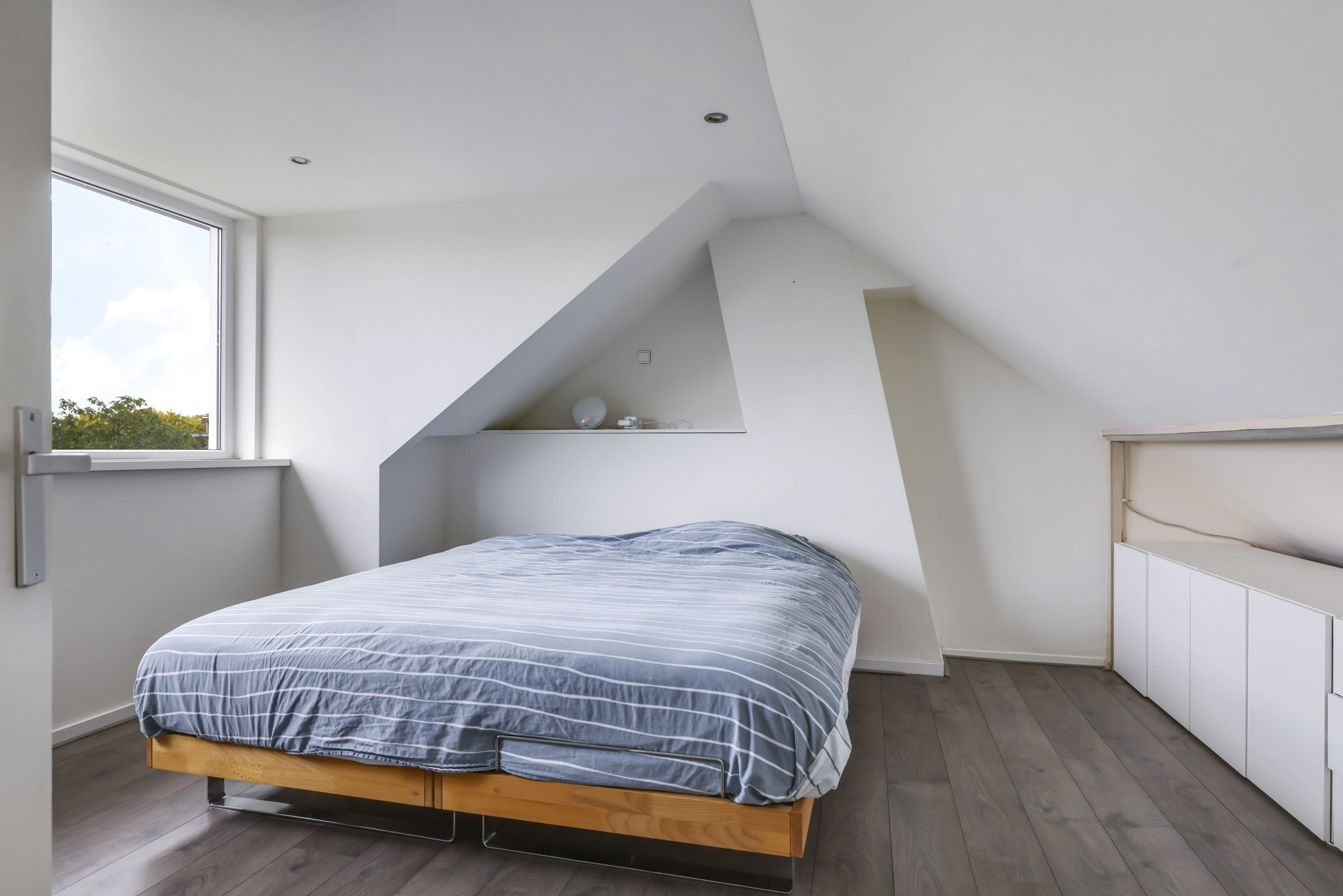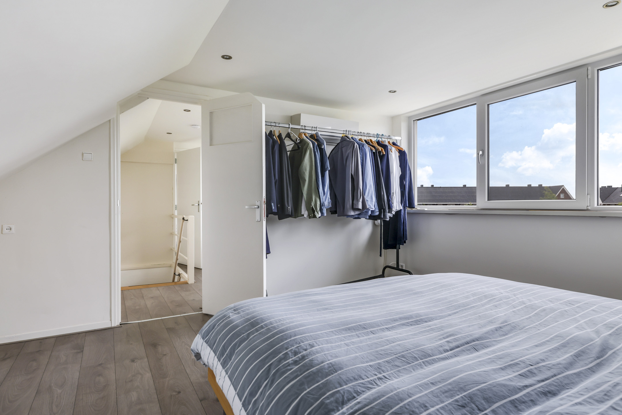 In 2021 heeft de woning een 2e impuls gekregen aangezien in dat jaar de complete dakconstructie van de bovenwoning is vervangen. En met een breedtemaat van 11 meter is het niet zomaar een kap om te vervangen. Er is een nieuw dakbeschot op het huis gekomen, inclusief isolatie, nieuwe dakpannen, zinken goten en zinken hemelwaterafvoeren. Tegelijkertijd is er aan de achterzijde een maximaal brede dakkapel geplaatst, hetgeen de woning (opnieuw) aanzienlijk heeft vergroot. Deze dakkapel is 9 meter breed en beslaat daardoor 3 ruimtes op de 2e verdieping. Uiteraard is deze dakkapel ook in kunststof uitgevoerd en bovendien (deels) voorzien van elektrisch bedienbare rolluiken. En als je dan toch bezig bent, is er ook maar gelijk airconditioning geplaatst. Wanneer je hier in de dakkapel naar buiten kijkt, geniet je een fenomenaal vrij uitzicht over de achtergelegen groenvoorziening, wandelpaden en (nieuwe) woonwijk.