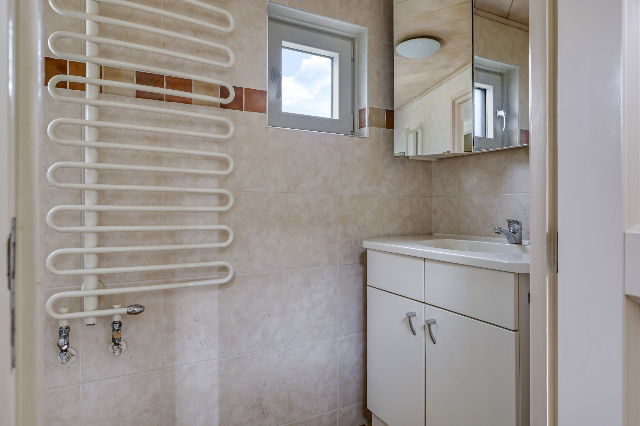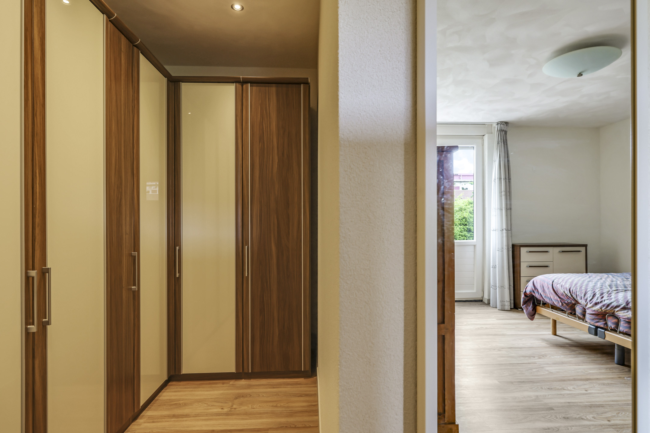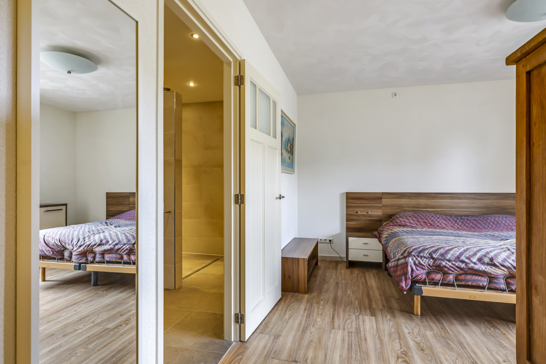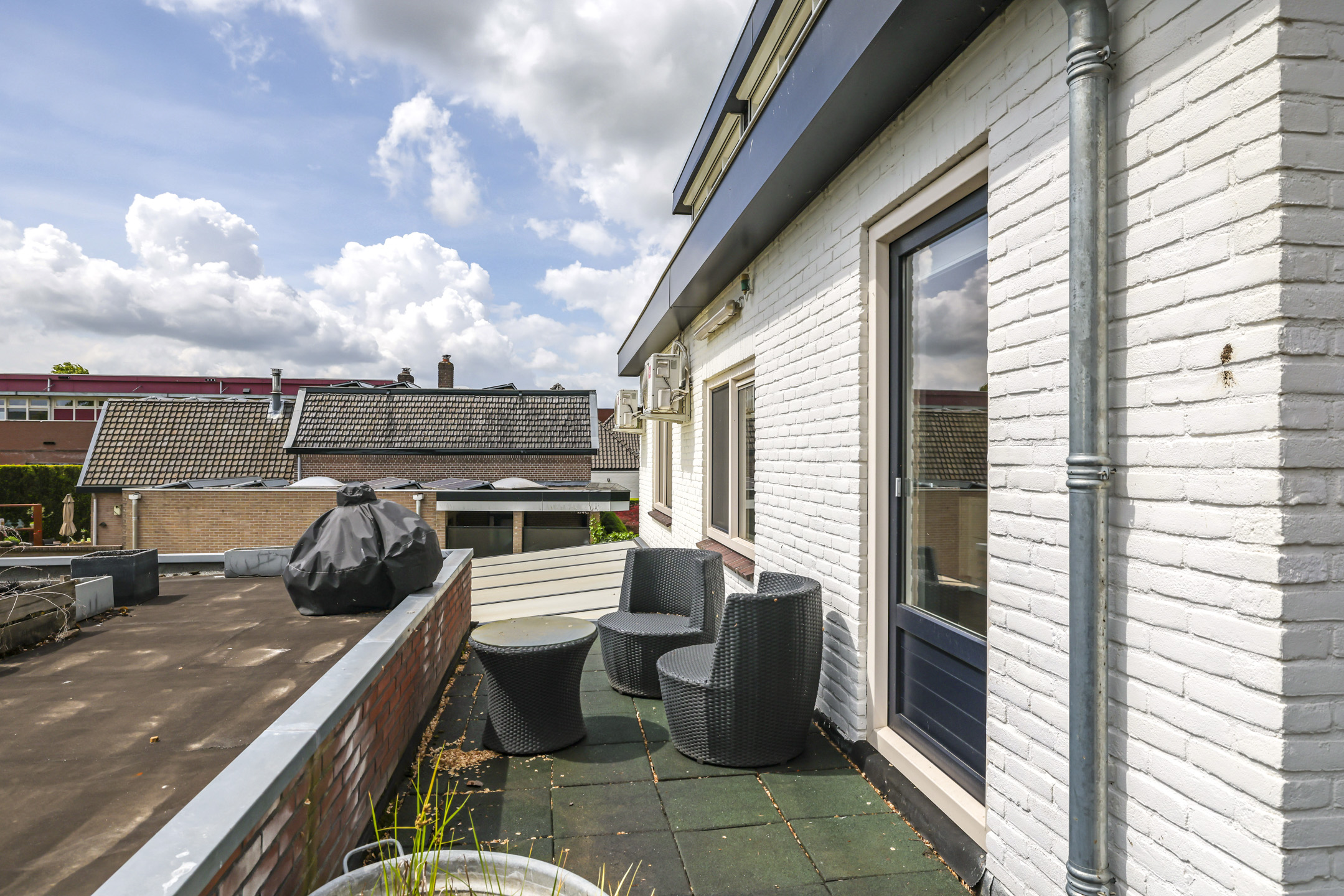In 2021 heeft de woning een 2e impuls gekregen aangezien in dat jaar de complete dakconstructie van de bovenwoning is vervangen. En met een breedtemaat van 11 meter is het niet zomaar een kap om te vervangen. Er is een nieuw dakbeschot op het huis gekomen, inclusief isolatie, nieuwe dakpannen, zinken goten en zinken hemelwaterafvoeren. Tegelijkertijd is er aan de achterzijde een maximaal brede dakkapel geplaatst, hetgeen de woning (opnieuw) aanzienlijk heeft vergroot. Deze dakkapel is 9 meter breed en beslaat daardoor 3 ruimtes op de 2e verdieping. Uiteraard is deze dakkapel ook in kunststof uitgevoerd en bovendien (deels) voorzien van elektrisch bedienbare rolluiken. En als je dan toch bezig bent, is er ook maar gelijk airconditioning geplaatst. Wanneer je hier in de dakkapel naar buiten kijkt, geniet je een fenomenaal vrij uitzicht over de achtergelegen groenvoorziening, wandelpaden en (nieuwe) woonwijk.