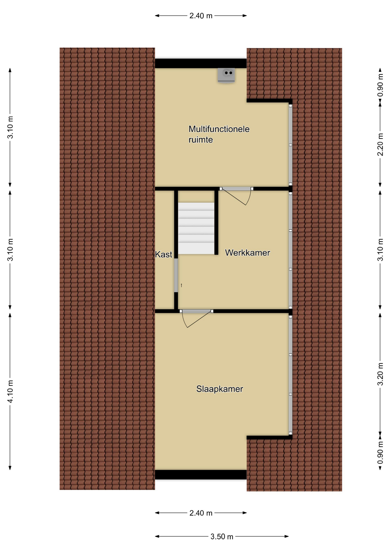 Overloop c.q. werkkamer met dakkapel en knieschot kastruimte