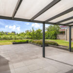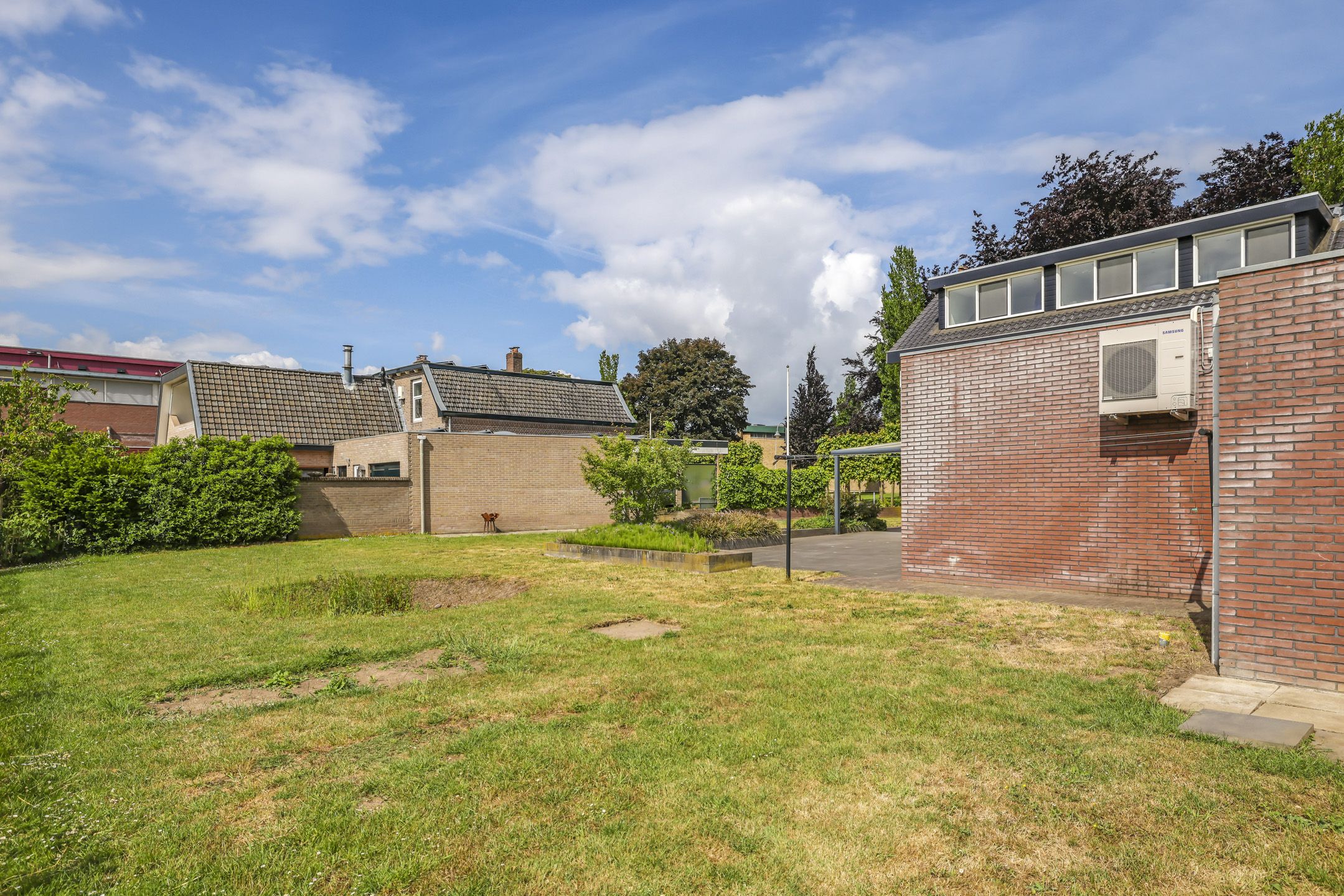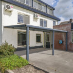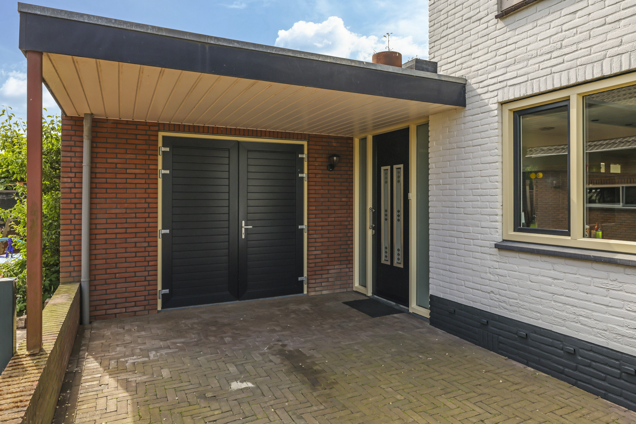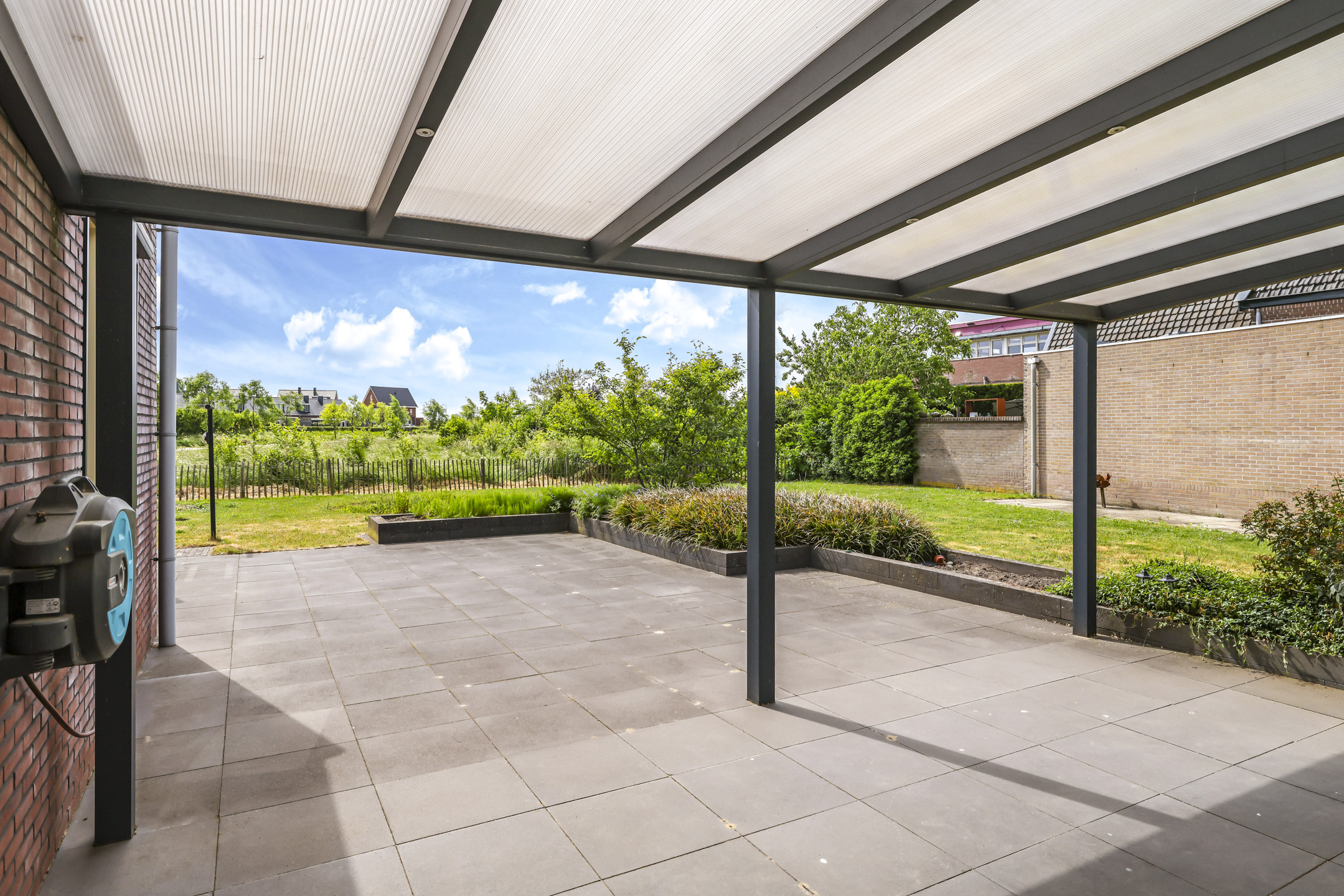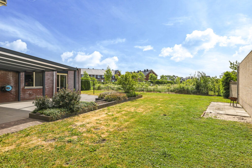 De achtertuin is aangelegd met een groot terras, verschillende borders v.v. planten en een grasveld. Hierdoor is de tuin overzichtelijk en is het tuinonderhoud goed te behappen. Aan de achterzijde van de woning is een terrasoverkapping (ca. 24m2) aangebouwd. Hier kun je ook bij minder weer droog en beschut buiten zitten. Helemaal achter de aanbouw vind je nog een aangebouwde, stenen schuur (ca. 8m2). Hier kun je het nodige tuingereedschap, tuinmeubels en speelgoed opbergen.
