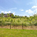 Ben je een tuin- en zonliefhebber, dan zal je de achtertuin ook zeker aanspreken. De achtertuin heeft namelijk een goed formaat en ligt pal op het zonnige zuiden. De tuin is maar liefst ca. 22 meter diep en 25 meter breed. Dit is het formaat waar je op hoopt wanneer je naar een vrijstaand huis gaat kijken. Overigens voelt de tuin nóg groter aan doordat je vrij weg kijkt over de achtergelegen groenvoorziening. De erfafscheiding (schapenhekwerk) is bewust open en laag gehouden. En dit kan ook gemakkelijk aangezien je geen directe achterburen hebt en er nauwelijks tot geen inkijk is.