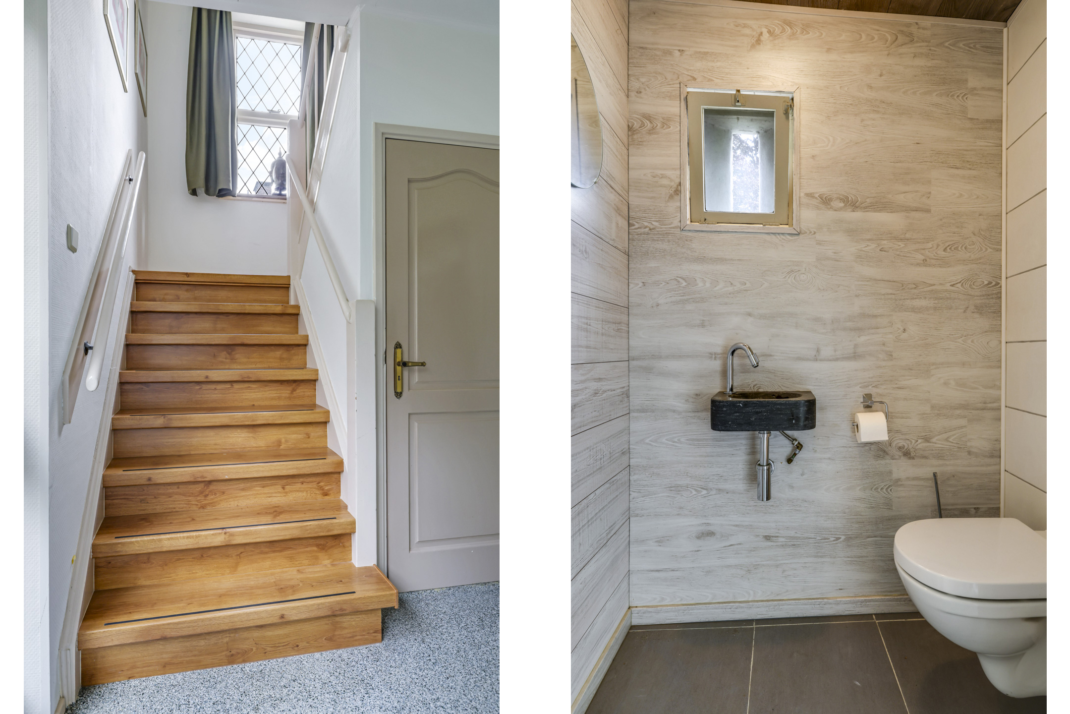 Hal/entree met toilet, trapopgang (bordestrap) en toegang tot kelder