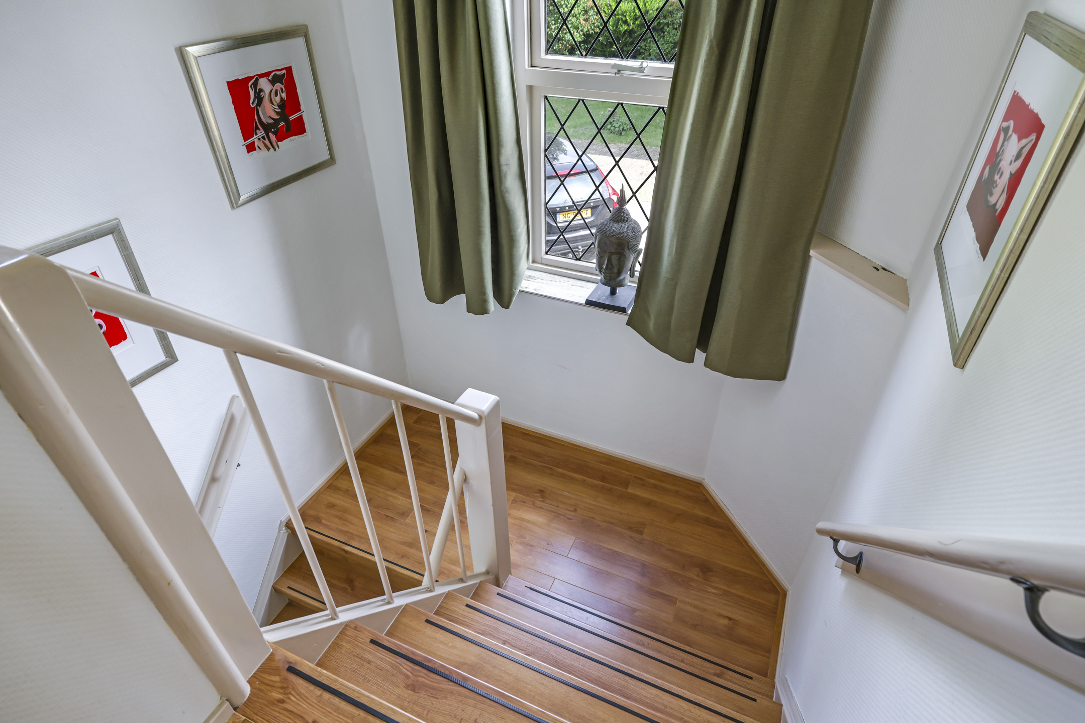 Overloop met toilet, hoek met witgoedaansluitingen en 2e trapopgang