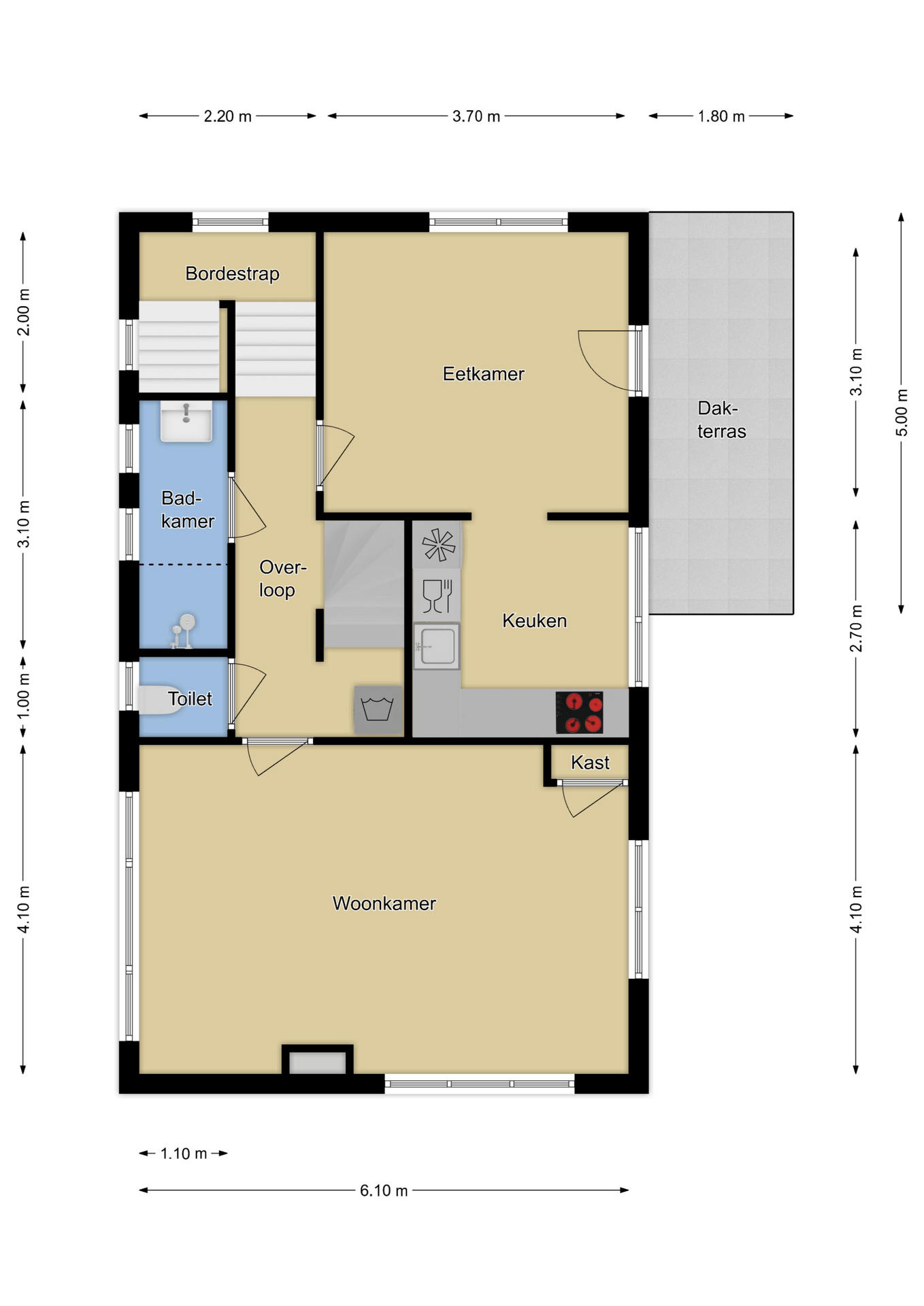 Keuken bovenwoning compleet met alle gebruikelijke inbouwapparatuur